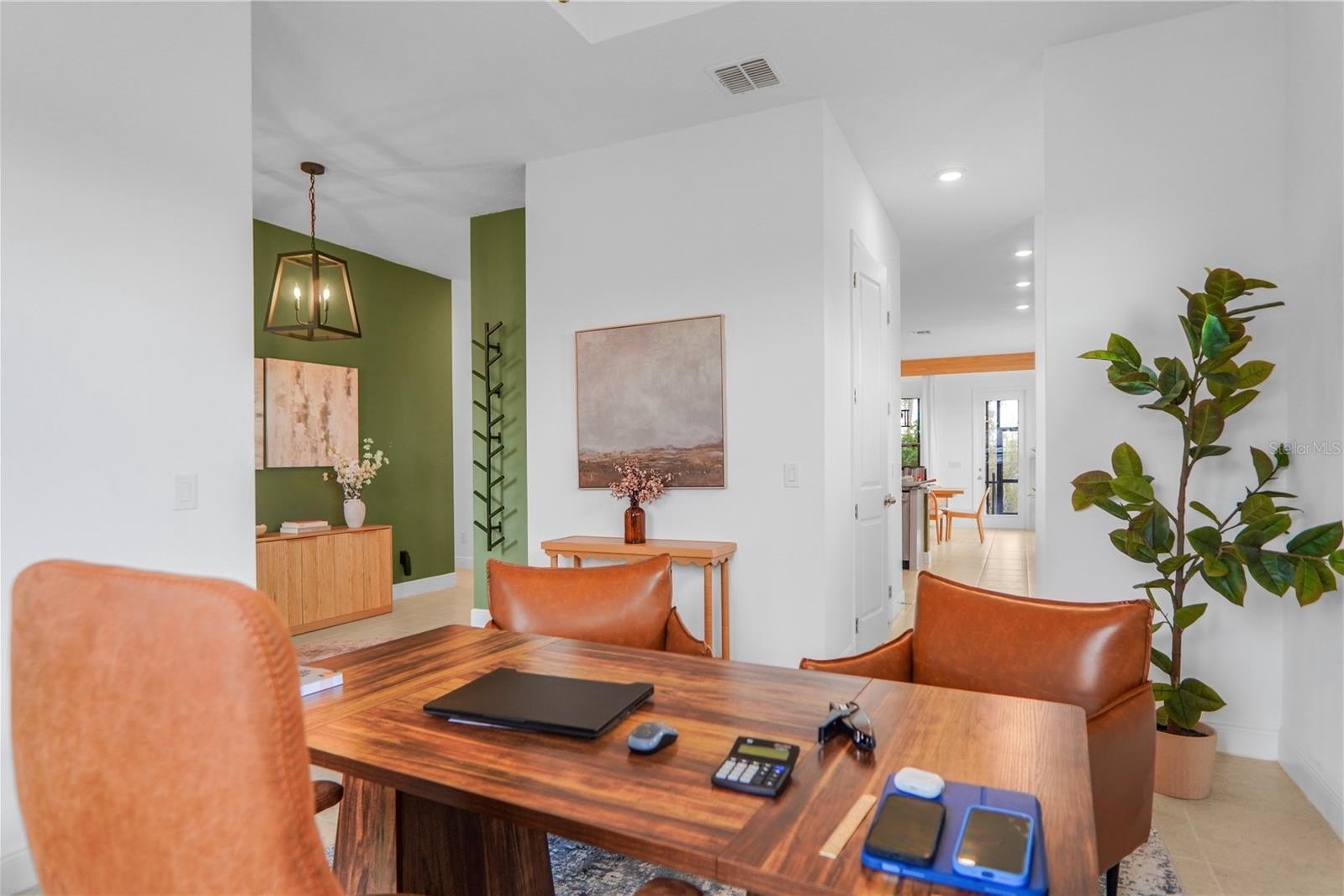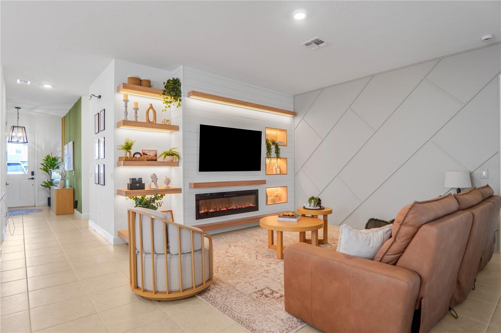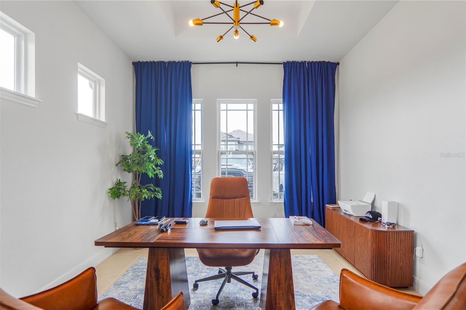 The living room features a charming electric fireplace and sophisticated finishes. The house stands out for its high-standard custom-designed cabinetry, with over US$80,000 in upgrades, including custom-made furniture in the powder room, laundry room, living areas, and other spaces, adding refinement, organization, and exclusivity throughout the home. There is also a private office, ideal for those who work from home or need a quiet environment for studying.