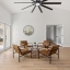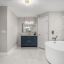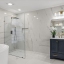 The chef’s kitchen is appointed with solid wood shaker cabinetry, striking waterfall quartz countertops, a porcelain farmhouse sink, brand-new stainless smart appliances, and a four-seat island that naturally draws conversation. A formal dining room adds elegance for hosted dinners, while the privately positioned primary suite offers a tray ceiling, dual closets, direct lanai access with a tranquil peek of the lake, and a luxurious en-suite featuring dual vanities, a curbless walk-in shower, and a soaking tub.