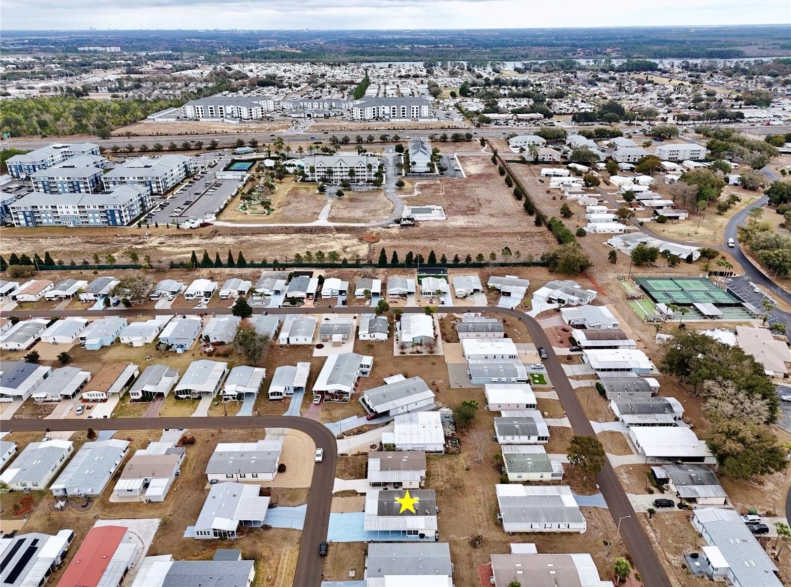 Welcome to a beautifully updated home in a prime location! As you pull into the shaded carport, you'll notice the extended driveway offering ample parking for visitors. Step inside and you'll be greeted by an inviting enclosed patio and sunroom, which lead into the expansive living space. With vaulted ceilings and floods of natural light, the atmosphere is both open and welcoming. Entertaining is a delight in the dining area, showcasing cabinets and a countertop perfect for a drink station. The adjacent bar top seating comes complete with a built in wine cooler to store your favorite beverages. The kitchen, a chef's haven, has been beautifully upgraded with granite counters, stainless steel appliances, a chic wine rack, decorative backsplash, and glass door cabinets, ensuring both functionality and style. Relax in the spacious primary suite with its tall ceilings, walk in closet, and an en suite bath featuring a glass door shower and convenient linen closet. The second bedroom is equally impressive with vaulted ceilings and a walk in closet, adjacent to a luxuriously renovated guest bath that includes brushed gold finishes and a rainfall shower panel tower. The laundry room is well equipped with a washer, dryer, and additional cabinet storage—leading out to another enclosed patio with access to a large storage room, great for holiday decor and tools alike. Located close by the community amenities, enjoy taking a dip in the swimming pool, playing a friendly match of pickleball, or hit the shuffleboard court. With its proximity to Disney World, Island H2O Water Park, Old Town, and local shopping and dining, as well as quick access to main roads including highway 27, 192, 429 and I-4, this house offers the perfect blend of tranquility and convenience. View the 3D tour and call to schedule your showing today!