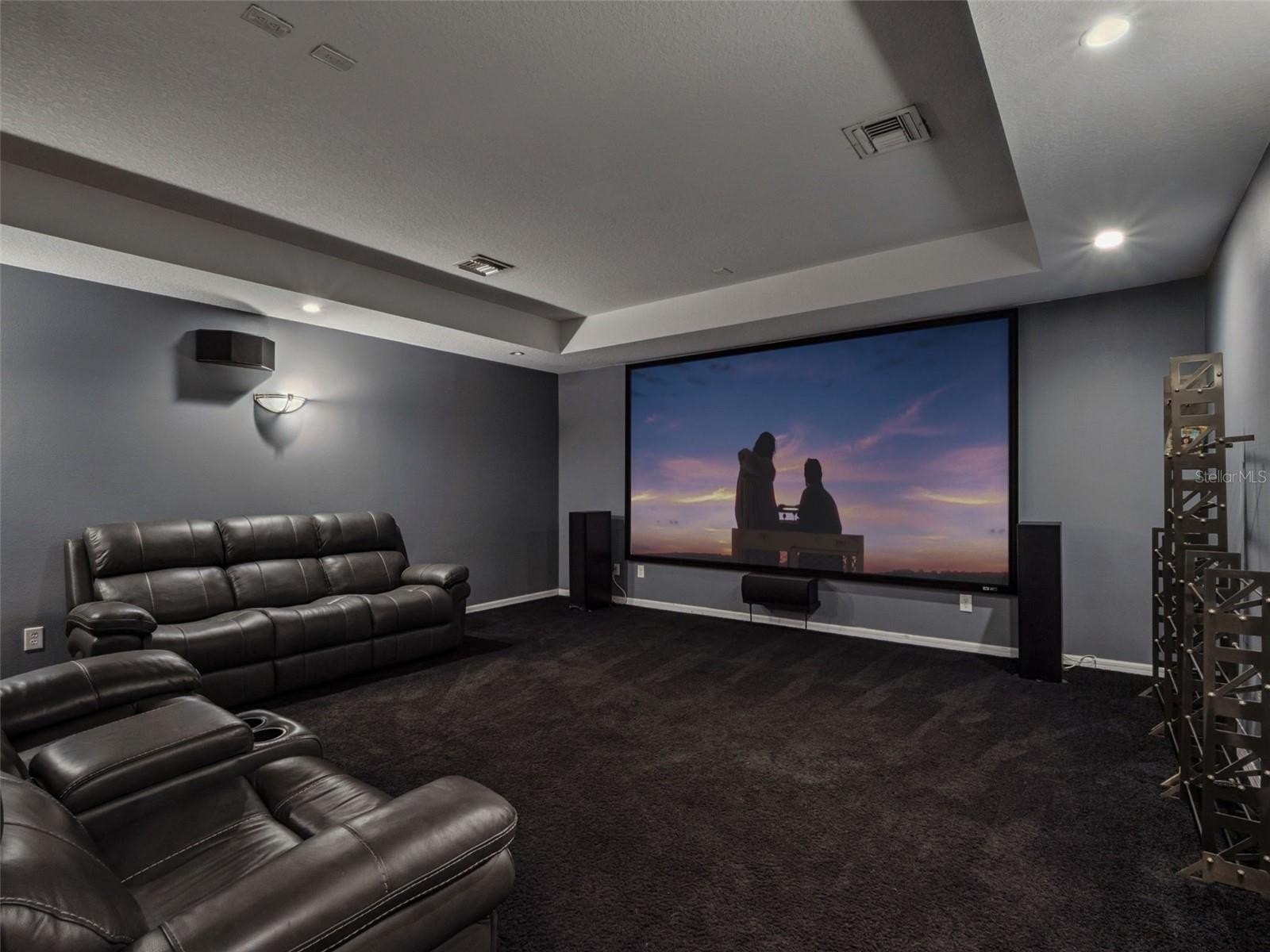 Inside, the home reveals four spacious bedrooms, four full baths, and multiple lifestyle spaces, including a dedicated home theater with wet bar and sound isolation, a workout or bonus room, and an expansive garage and workshop addition. The 2021 kitchen and living area renovation introduced elevated finishes, smart functionality, and timeless design, complemented by porcelain flooring throughout and upgraded electrical, plumbing, and mechanical systems that provide long-term peace of mind.