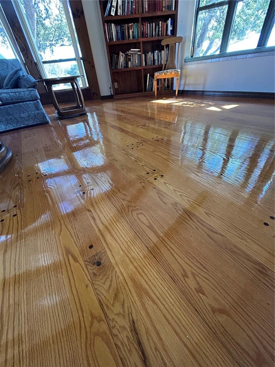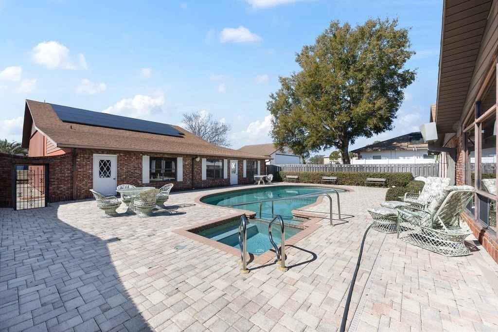 One or more photo(s) has been virtually staged. Welcome to a rare opportunity in the Leeward Air Ranch, a gated Central Florida airport community. Warm and inviting 3/2 brick home with large hangar on 1.77 acres is offered only to licensed pilots! Enjoy the view from your living room with wood burning fireplace and cathedral ceiling with exposed beams. Windows at the front and back of the home go all the way to the top for lots of natural light. Wide plank, solid hardwood floors are beautiful and made to last. See and feel the quality. The primary suite is 20x20 with a fireplace and opens through French doors to the huge Florida room looking out to an in-ground saltwater pool. Paver decking leads you beyond the private courtyard to the 50x60 hangar. With a door opening of 50x14'4" or higher you can store your airplane and also fit an RV and/or boat. There’s so much more! Attached to the hangar are a 2 car garage and an apartment with full kitchen, full bath and laundry-- ideal for guests, extended family or pilot quarters. Want to change your own oil? There's a maintenance pit with water and power! Need more storage? Check out the full basement! New shingle roof was installed on both the house and hangar in 2019. Whole house solar panels installed in 2025 will keep the electric bill low and house is on well and septic-- no water or sewer bills! Taxi from your home to the north/south runway, a reinforced and lighted grass strip 6200 x 165. Many activities await the new owner such as fly-in's and weekly fly-out's with blue skies all year long. Non-aviation activities include art, bingo, exercise, music events, hangar happy hours, motorcycle rides, etc. Celebrate the holidays with your neighbors in our Red Barn Community Center. Golf enthusiasts will love the 18 hole course nearby. Low, low HOA fees! Don't wait, make this house your forever home. Priced right so you can update to your style!
