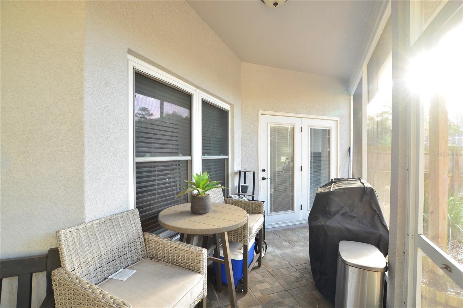 Inside, you’ll find a bright, open floor plan that seamlessly connects the main living areas. The kitchen is equipped with stainless steel appliances (new double door fridge) and a convenient breakfast bar overlooking the great room, making it perfect for both casual mornings and entertaining guests. Step outside through French doors to a screened patio and cozy fire pit area, creating an inviting space to unwind year-round.