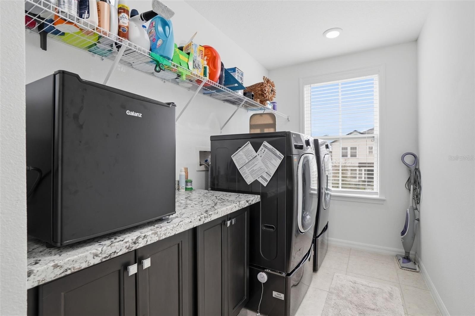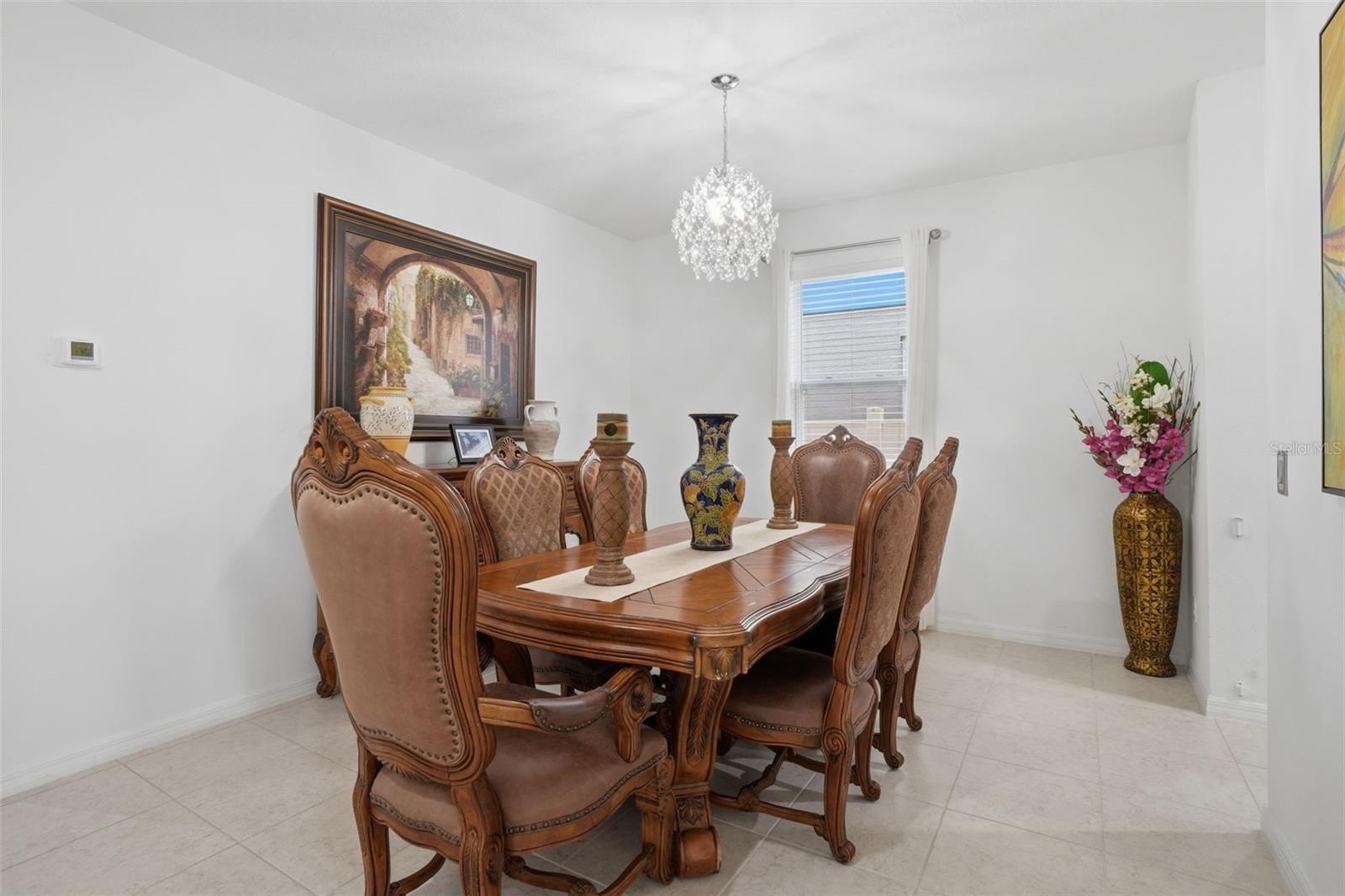 The gourmet kitchen is a showpiece, featuring top-of-the-line stainless steel appliances, elegant countertops, a meticulously designed backsplash, upgraded lighting with chandeliers and pendant fixtures, LED recessed lighting, and special-order drapes that elevate the entire space. The seamless flow between the kitchen, dining, and living areas makes this home ideal for everyday living and entertaining.