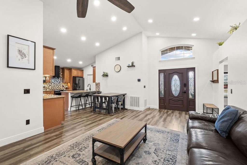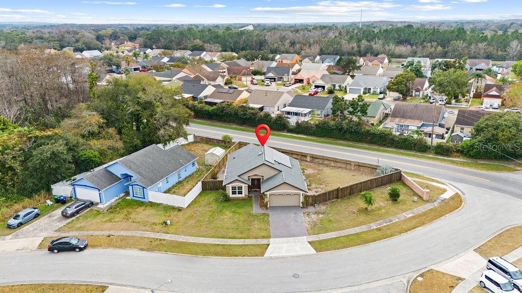 TURNKEY Home with LOTS of Perks! Enjoy Paid Off SOLAR System that provides affordable energy bills during the hot summers. This home is conveniently located close to major highways, shopping, restaurants, and Airport. It is situated on a Fully Fenced in Corner Lot (over 0.25 Acre) in a community with NO HOA and NO CDD. Home has been fully remodeled and features Tile all throughout, Electric Fireplace in the Living Room, Built-in Closets, Double-Pane Energy Efficient Windows, Smart Thermostat, and more. Spacious Kitchen has Luxury 42 Inch Cabinets with Lots of Storage Space, Granite Countertops, Built-in Coffee Maker, SMART Samsung Stove and Refrigerator, and Brand New Range Hood. Large Primary Bedroom has access to the backyard and extended deck. Primary Bathroom features Double Sinks, Walk-in Shower with a Bench, and a Separate Toilet Room where you will find a New Japanese Toilet with Heated Seat and Warm Water from Bidet. French Doors in the Kitchen lead to a Screened-in Patio and backyard. Through the side gate you can access the backyard with more than enough space to park a Boat or RV, build a pool, set up a playground or a chicken coop – whatever your heart desires. Hurricane Shutters are an Added Bonus for a Peace of Mind. In a Two Car Garage you have a Separate Laundry Room with Cabinets, as well as a side door with access to the backyard.