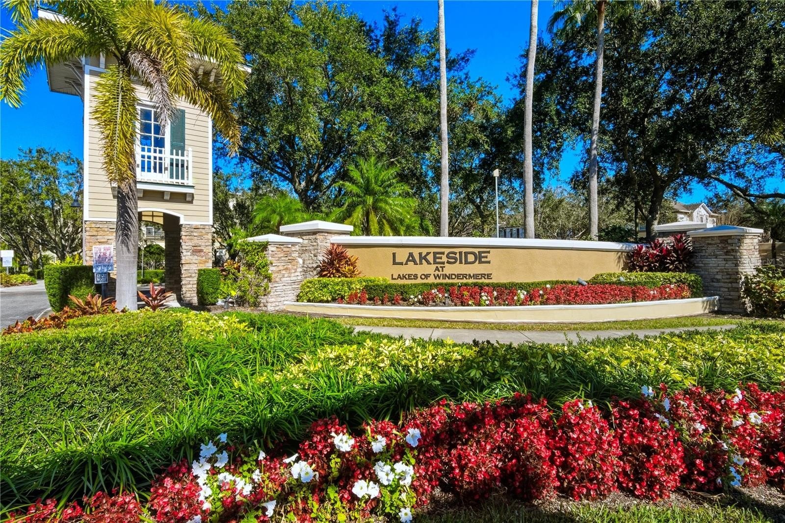 Discover the best of Windermere living in this meticulously maintained 3-bedroom, 2-bath CORNER UNIT condo in Lakeside at Lakes of Windermere. An expansive wrap-around screened porch embraces tranquil views and Florida breezes while providing an ideal space for morning coffee or evening relaxation. Inside, the open-concept layout features silestone countertops, cherry cabinets, and stainless appliances (2023 microwave, and upgraded dishwasher) lending a modern flair to the chef’s kitchen. Additional recent upgrades include a **2024 Carrier 15 SEER HVAC system** for comfort and energy efficiency throughout the year and **BRAND NEW 2025 new wood look porcelain tile** in all three bedrooms (NO CARPET). The generous primary suite and two additional bedrooms are thoughtfully separated for privacy. This floor plan features the closet OUTSIDE of the bathroom in the primary bedroom. Located just steps from the clubhouse and pool, this unit offers easy access to community amenities. Lakeside at Lakes of Windermere residents enjoy a fitness center, clubhouse and resort-style pool. The neighborhood is nestled near Lake Burden with access to a shared private dock and its own man-made lake. As a gated community, it also features a billiards room, walking paths around a central pond, and sports courts and fields. This home is just a few minutes drive from Walt Disney World (and neighboring parks) and boasts a view of the Disney fireworks EVERY night!! The combination of a well-appointed interior, wrap-around porch and enviable location near neighborhood amenities and Orlando's best entertainment make this corner-unit condo an exceptional opportunity.