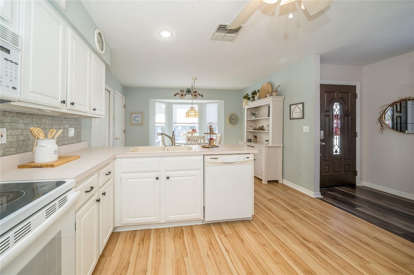 Big lot, big charm, and big opportunities – all in one beautiful home! Welcome to this WEDGEWOOD MANOR HOME, perfectly situated on a corner lot! Step inside through the tiled foyer entry and you’ll immediately feel at home. Just off the entry is a spacious kitchen featuring solid wood cabinets, plenty of counter space, a built-in desk area, closet pantry, and a bright dinette with bay window that fills the room with natural light. The kitchen and dinette flooring were updated in 2020 with elegant Silent Blue Stone/Plastic Composite. This 2-bedroom, 2-bath home offers over 1,660 sq. ft. of living space, including a large Living/Dining Room combination plus a bonus room with French doors—ideal for guests, crafts, an office, or a cozy den. The primary suite features a walk-in closet and private bath, while the second bedroom is conveniently located near the guest bath, which includes a relaxing jetted tub. Additional storage abounds with a hall linen closet and an extra-large storage closet. The main living area boasts vaulted ceilings and a plant shelf, perfect for displaying your favorite décor. Abundant windows throughout the home bring in beautiful natural light, and the French doors (2019) open to a lovely rear patio—ideal for enjoying Florida’s sunshine. The garage includes an insulated door and a privacy screen, allowing the breeze in while you work or do laundry. Other features include: Gable Roof (2010); HVAC (2019); Water Heater (2019); New Stove & Disposal (2019). Wedgewood Manor offers a low HOA fee that includes lawn care, basic cable, community pool, shuffleboard, and a beautiful clubhouse with plenty of social activities.
