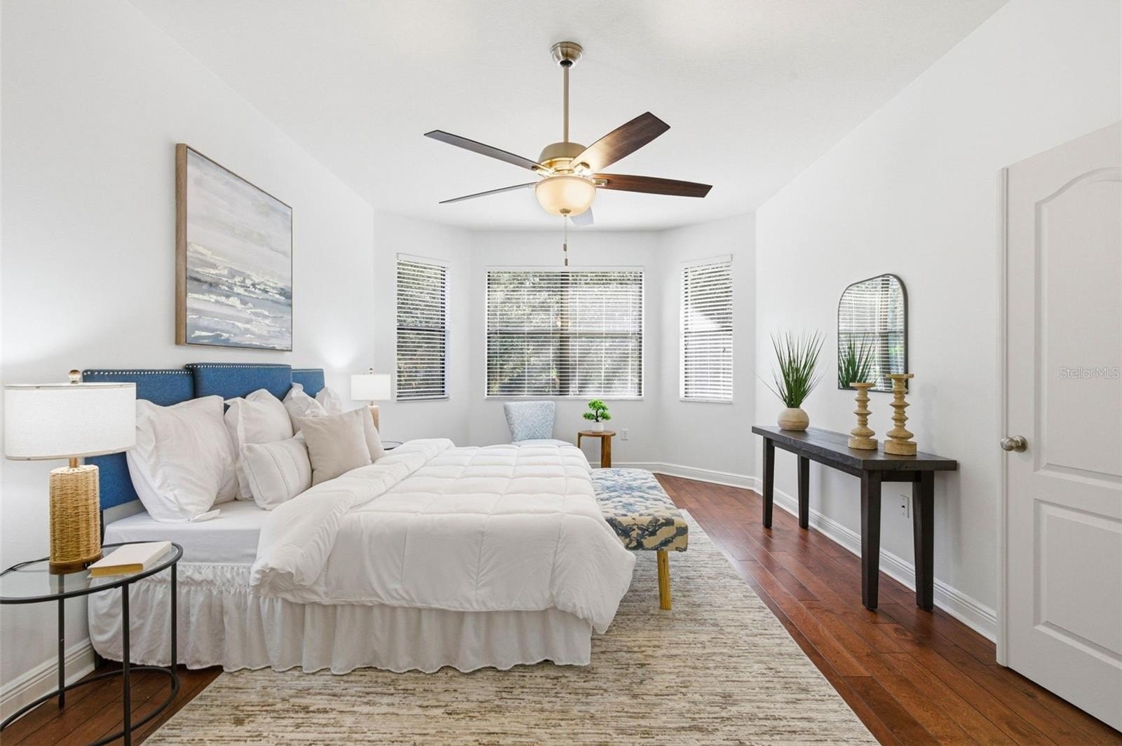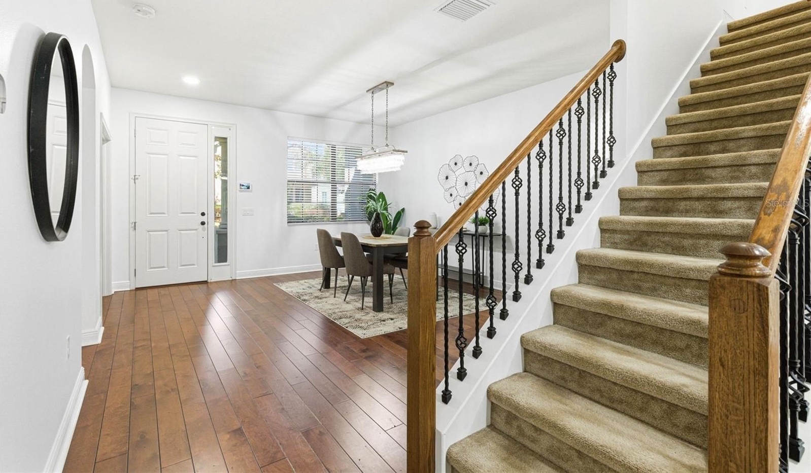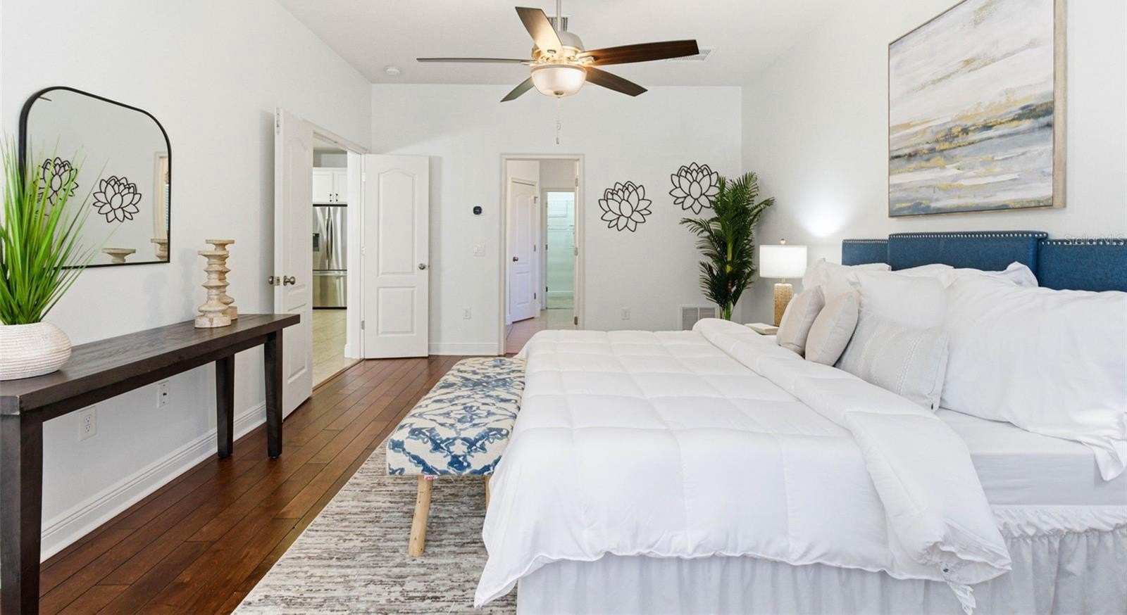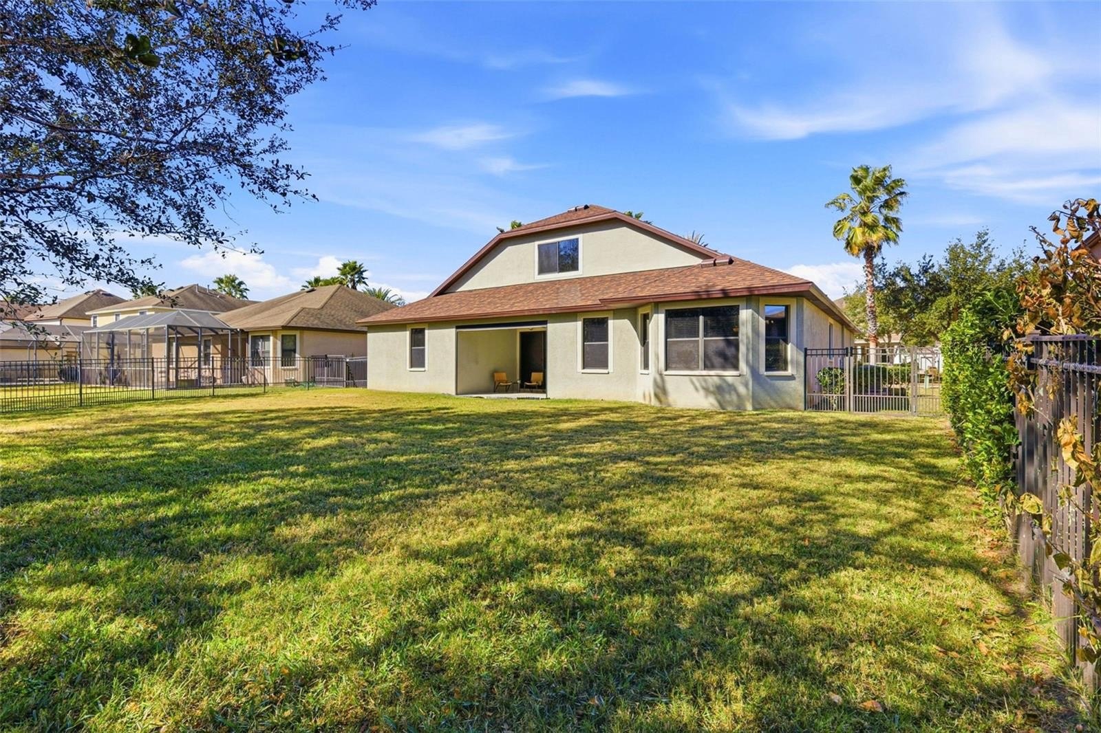 One or more photo(s) has been virtually staged. Located within the desirable, gated community of Grand Hampton, this William Ryan Homes residence at 7907 Hampton Lake Drive offers a thoughtfully designed floor plan, refined finishes, and serene conservation views on an oversized lot. As you arrive, Florida-friendly lush landscaping and modern outdoor lighting guide you toward the covered front entryway framed by classic columns, setting the tone for what awaits inside. Upon entry, the foyer opens into the formal dining room, highlighted by a cascading chandelier and ample space for hosting large gatherings and special occasions. Just adjacent is a bonus room currently used as a dedicated office, filled with natural light and ideal for productivity or creative use. Nearby, Bedroom Two and the first full bathroom provide a convenient and private setup for guests. The home then unfolds into a bright open-concept living area featuring recessed lighting and expansive sliding glass doors—complete with a screen—allowing you to enjoy cool Florida days while overlooking the outdoor oasis. Just beyond the living room, the breakfast area offers a peaceful setting for quiet mornings and casual meals. The kitchen serves as the heart of the home, showcasing recessed lighting, solid wood cabinetry, a tiled backsplash, granite countertops, stainless steel appliances including a gas range, and a large center island with seating. A spacious under-the-stair storage closet with custom shelving provides exceptional organization. The expansive primary suite, thoughtfully positioned on the main floor, offers a peaceful retreat with generous proportions and abundant natural light. The space comfortably accommodates a king-size bed and sitting area, creating a true sanctuary within the home. The large walk-in closet provides ample storage, while the spa-inspired primary bathroom features a dual-sink granite vanity, a deep soaking tub, and a glass-enclosed walk-in shower, delivering a relaxing, resort-like experience. Down the hall, two additional bedrooms and a third full bathroom complete the main level. Upstairs, a massive bonus room offers endless possibilities—entertainment lounge, media room, home gym, or play space—enhanced by built-in surround sound speakers. The outdoor living area features a covered porch equipped with a Sunbelt remote-controlled screen, overlooking a fully fenced expansive backyard with uninterrupted conservation views, providing privacy and tranquility. The three-car garage includes upper storage shelving and a utility sink for added convenience. Notable Updates & Features: Roof (2025) | HVAC (2025) | Tankless Gas Water Heater (2021) | Hunter Irrigation System | Ecobee Thermostat | IQ Panel Home System. The Grand Hampton community offers an exceptional lifestyle with resort-style amenities, including a 24-hour manned gate, state-of-the-art clubhouse, fitness center, playgrounds, lake access, and heated pools—featuring a lagoon-style pool with slide and a dedicated lap pool. Residents also enjoy tennis courts and basketball courts. Ideally located near I-75 and I-275, this home provides convenient access to AdventHealth Hospital, PHSC, AdventHealth Center Ice, The Shops at Wiregrass, and Tampa Premium Outlets. Schedule your private showing today, and for a virtual tour, click the provided link to experience this remarkable property firsthand.
