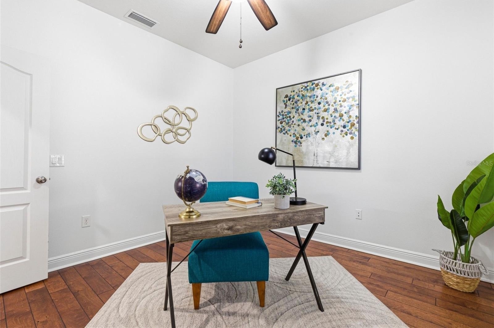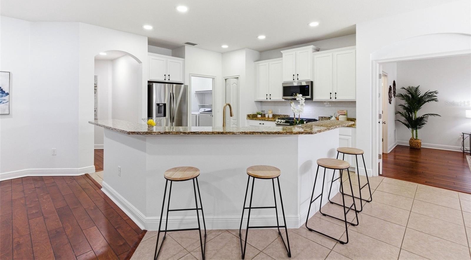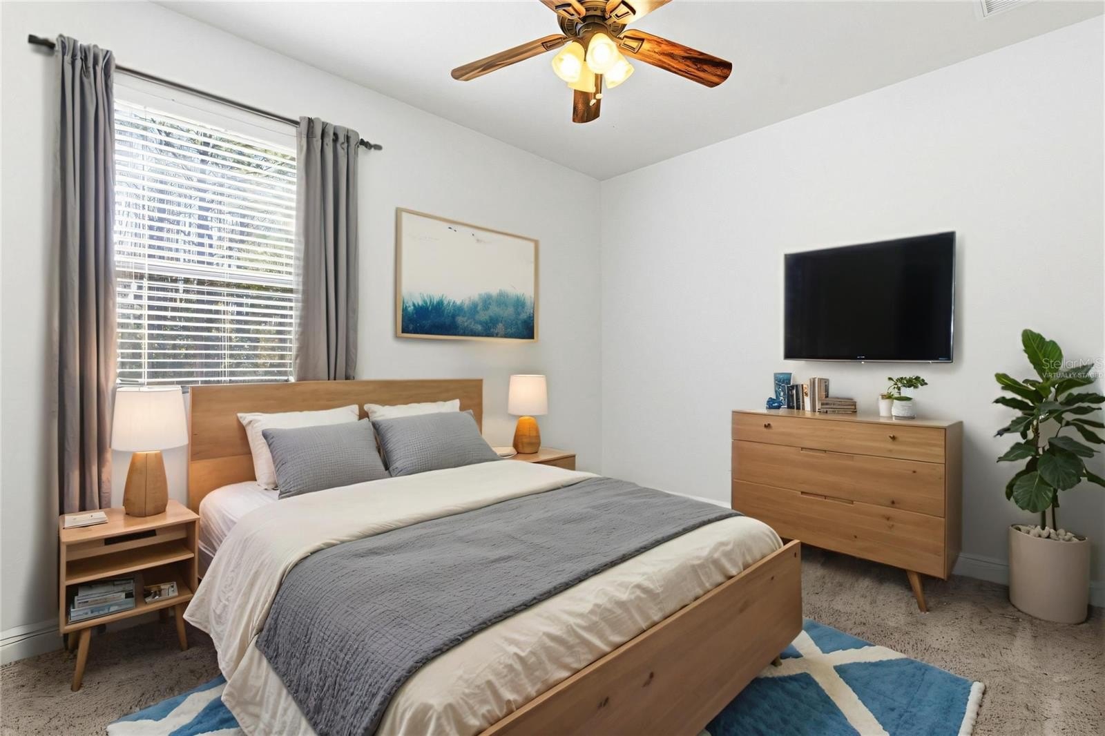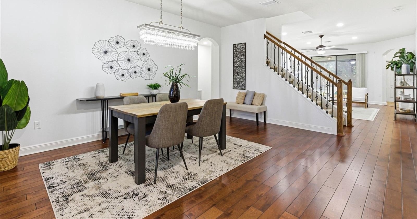 One or more photo(s) has been virtually staged. Located within the desirable, gated community of Grand Hampton, this William Ryan Homes residence at 7907 Hampton Lake Drive offers a thoughtfully designed floor plan, refined finishes, and serene conservation views on an oversized lot. As you arrive, Florida-friendly lush landscaping and modern outdoor lighting guide you toward the covered front entryway framed by classic columns, setting the tone for what awaits inside. Upon entry, the foyer opens into the formal dining room, highlighted by a cascading chandelier and ample space for hosting large gatherings and special occasions. Just adjacent is a bonus room currently used as a dedicated office, filled with natural light and ideal for productivity or creative use. Nearby, Bedroom Two and the first full bathroom provide a convenient and private setup for guests. The home then unfolds into a bright open-concept living area featuring recessed lighting and expansive sliding glass doors—complete with a screen—allowing you to enjoy cool Florida days while overlooking the outdoor oasis. Just beyond the living room, the breakfast area offers a peaceful setting for quiet mornings and casual meals. The kitchen serves as the heart of the home, showcasing recessed lighting, solid wood cabinetry, a tiled backsplash, granite countertops, stainless steel appliances including a gas range, and a large center island with seating. A spacious under-the-stair storage closet with custom shelving provides exceptional organization. The expansive primary suite, thoughtfully positioned on the main floor, offers a peaceful retreat with generous proportions and abundant natural light. The space comfortably accommodates a king-size bed and sitting area, creating a true sanctuary within the home. The large walk-in closet provides ample storage, while the spa-inspired primary bathroom features a dual-sink granite vanity, a deep soaking tub, and a glass-enclosed walk-in shower, delivering a relaxing, resort-like experience. Down the hall, two additional bedrooms and a third full bathroom complete the main level. Upstairs, a massive bonus room offers endless possibilities—entertainment lounge, media room, home gym, or play space—enhanced by built-in surround sound speakers. The outdoor living area features a covered porch equipped with a Sunbelt remote-controlled screen, overlooking a fully fenced expansive backyard with uninterrupted conservation views, providing privacy and tranquility. The three-car garage includes upper storage shelving and a utility sink for added convenience. Notable Updates & Features: Roof (2025) | HVAC (2025) | Tankless Gas Water Heater (2021) | Hunter Irrigation System | Ecobee Thermostat | IQ Panel Home System. The Grand Hampton community offers an exceptional lifestyle with resort-style amenities, including a 24-hour manned gate, state-of-the-art clubhouse, fitness center, playgrounds, lake access, and heated pools—featuring a lagoon-style pool with slide and a dedicated lap pool. Residents also enjoy tennis courts and basketball courts. Ideally located near I-75 and I-275, this home provides convenient access to AdventHealth Hospital, PHSC, AdventHealth Center Ice, The Shops at Wiregrass, and Tampa Premium Outlets. Schedule your private showing today, and for a virtual tour, click the provided link to experience this remarkable property firsthand.