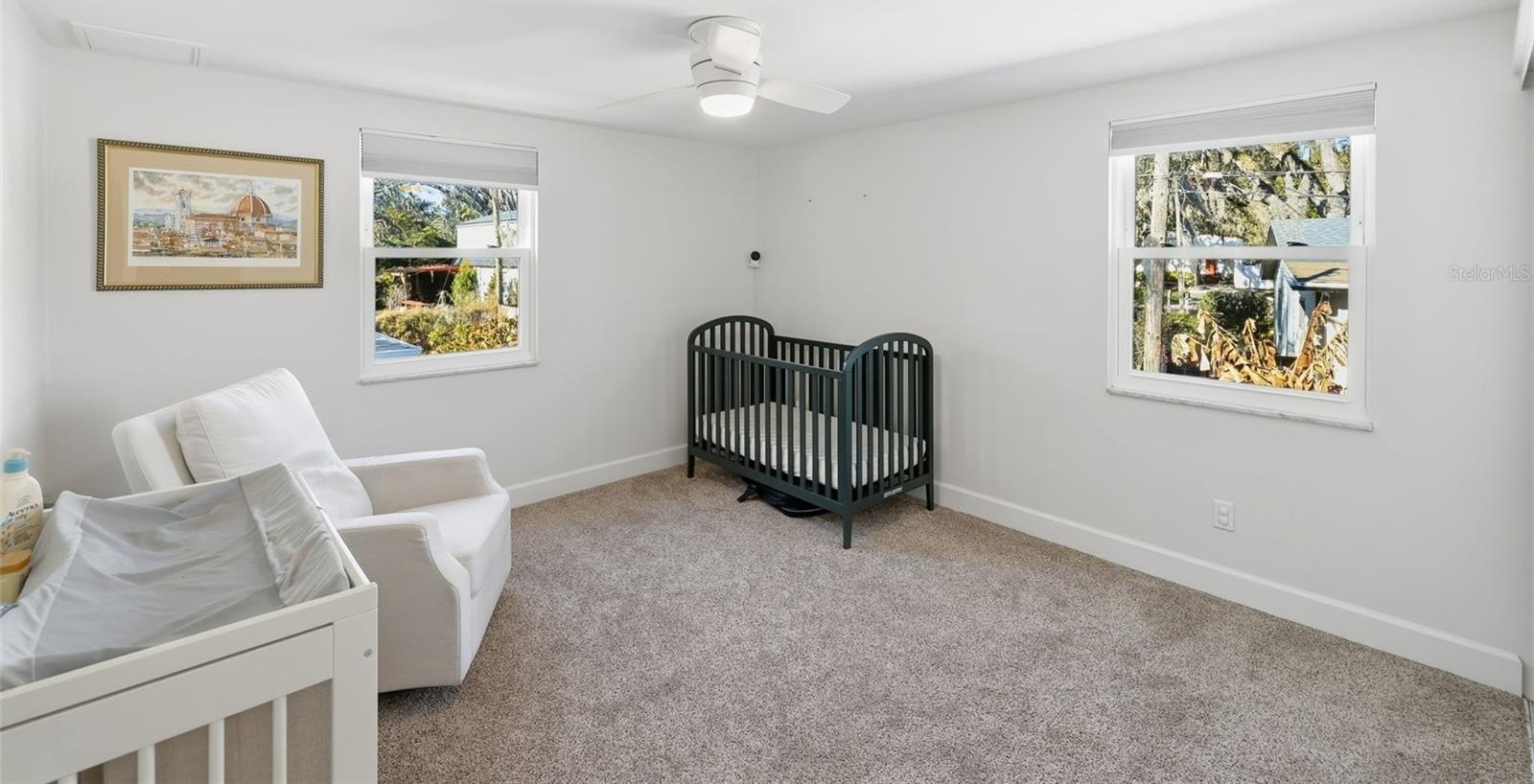 Beautifully remodeled two-story home in a sought-after Temple Terrace location, featuring a bright, timeless white-on-white interior and move-in ready condition. The redesigned kitchen includes new cabinetry, countertops, backsplash, and recessed/under-cabinet lighting, with a bonus room nearby ideal for an office or guest space. Upstairs features generously sized bedrooms with new carpet and ceiling fans, plus an updated primary suite with walk-in shower and double vanity.