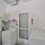 This home features a thoughtfully designed split bathroom with a pocket door dividing the space for added privacy. One side offers a private toilet and sink, while the other includes a second vanity, toilet, and a full shower — ideal for guests or shared living.