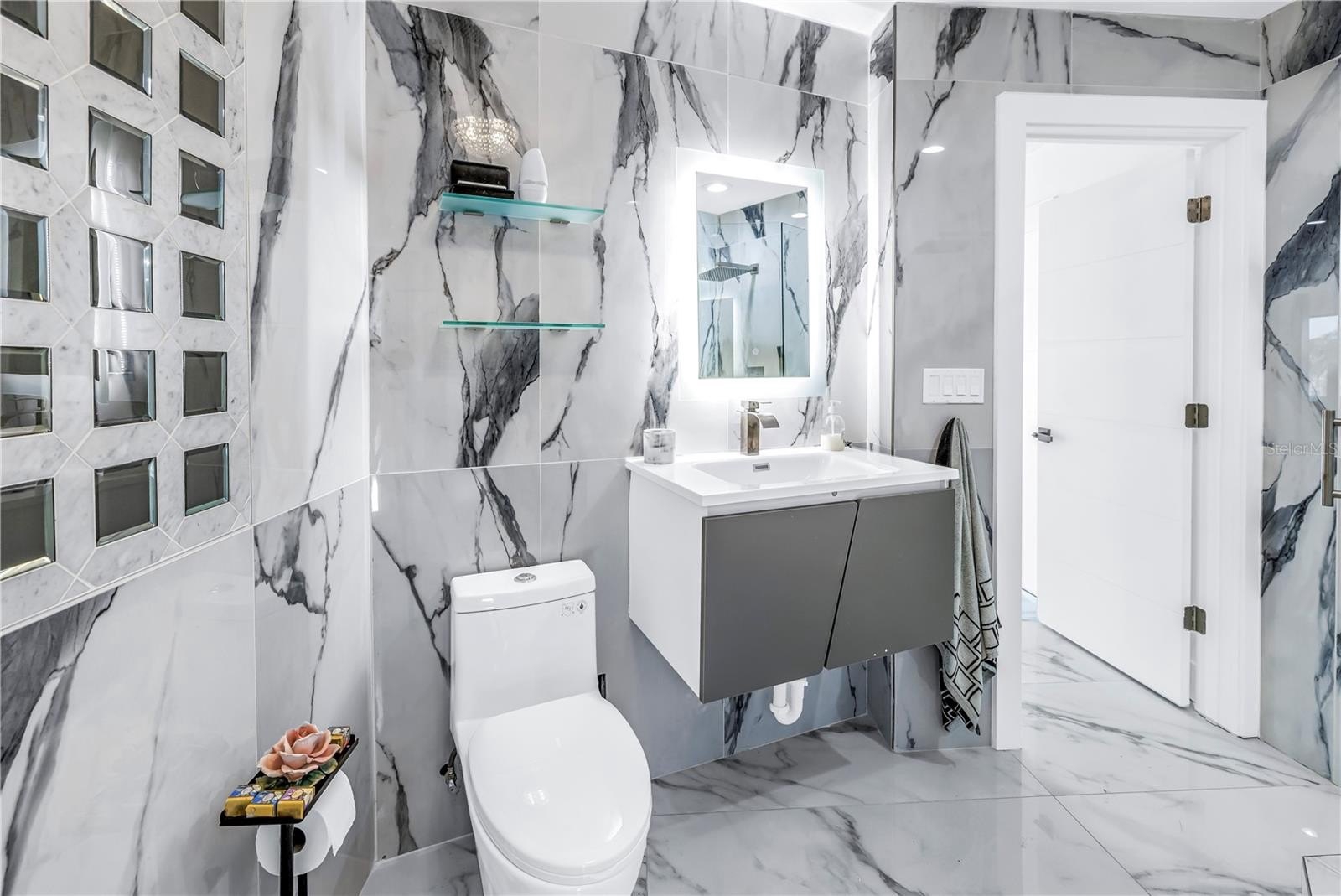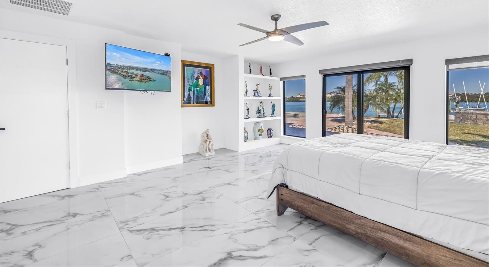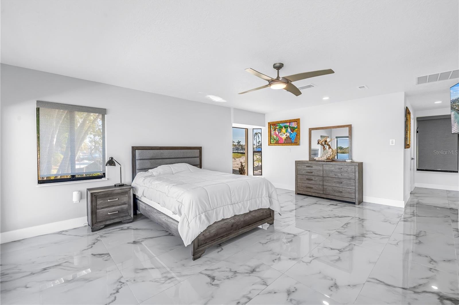 Beyond its refined aesthetic, the residence has been comprehensively remodeled with an emphasis on longevity, flow, and peace of mind. During renovation, the original water-facing wall and Northeast wall was thoughtfully removed to open the home to expansive water views, creating a new luminous dining area and living experience. Enhancements include a 2021 barrel tile roof, new impact windows and sliding glass doors along the waterside, a newer HVAC system, new electrical panel (2021), all new appliances, including a gas stove with a pot filler, and fully reimagined bathrooms throughout—ensuring the home is as sound as it is beautiful.