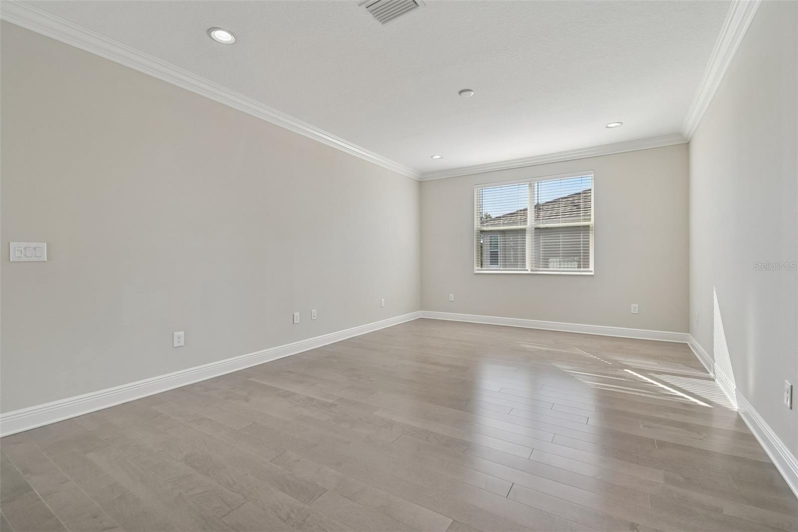 One or more photo(s) has been virtually staged. Almost NEW Luxurious living space 5-bedroom, 4-bathroom & a dedicated office, this gem is located in the 24/7 secured exclusive gated community of The Ridge at Wiregrass Ranch in Wesley Chapel, Florida. You’ll fall in love the minute you arrive! This home faces TRUE NORTH, boasts impressive curb appeal with its professionally manicured landscaping, long lasting TILE ROOF, extravagant EXTENDED PAVER DRIVEWAY, stone siding, upgraded elevation, luxurious crown moldings throughout the entire home including closets and bathroom, NO CARPETS. As you enter, the formal living room welcomes you with 10-FOOT CEILINGS and ceramic tile flooring throughout the first floor. Expansive glass sliding doors and windows fill the space with comforting natural light. The massive chef’s kitchen has abundant cabinetry, and plenty of room to gather. It features stainless steel appliances, quartz countertops, ample counter space, a large peninsula, and a casual dining area surrounded by windows. Upstairs, you’re greeted by a large loft—ideal for family movie nights or a game room. The primary suite is a serene retreat with a spa-like bathroom featuring a glass-enclosed shower, garden tub, dual vanities, and huge walk-in closet. The scenic screen enclosed EXTENDED PAVER PATIO with stunning CONSERVATION VIEWS plus Privacy Pull-down shades, this home offers a true retreat setting with NO REAR NEIGHBORS. A FULL OUTDOOR KITCHEN perfect for grilling, dining, and enjoying Florida’s beautiful weather year-round. Every detail of this home reflects pride of ownership and quality craftsmanship. Zoned for TOP-RATED and HIGHLY DESIRED SCHOOLS. Residents of The Ridge enjoy resort-style amenities, including a luxurious clubhouse with a beach-entry pool, waterslide, lap pool, fire pit, tennis courts, outdoor sports court, beach volleyball, playground, playfield, and party pavilion. The community also offers a social hall, sports complex, game room, and fitness center. The HOA covers lawn mowing, landscape maintenance, fertilization, and yearly mulch. Conveniently located near I-75, The Shops at Wiregrass, The Grove, Wiregrass Sports Campus, Tampa Premium Outlets, hospitals, restaurants, and more, this exceptional home combines luxury, comfort, and convenience in one of Wesley Chapel’s most desirable communities.