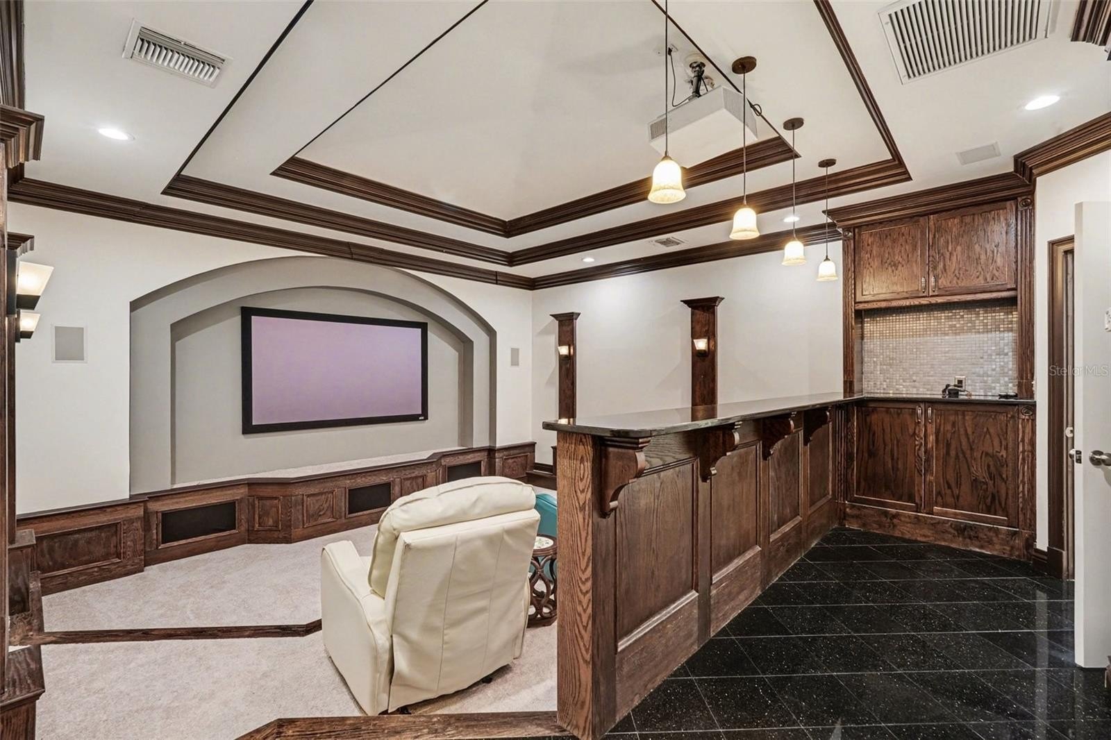Experience the effortless coastal lifestyle in this exceptional Tierra Verde residence, located in one of Florida’s premier boating communities on the West Coast. From the moment you arrive via the pavered driveway and welcoming covered front porch, it’s clear this home was thoughtfully designed for both relaxed everyday living and memorable entertaining. The spacious kitchen is the heart of the home, featuring high-end appliances, generous counter space, and an expansive granite-topped bar that invites guests to gather before enjoying meals in the adjacent dining room. Just beyond, a dedicated 20x20 home theater delivers the ultimate movie-night or game-day experience, complete with a cozy bar area and a 92-inch projection screen. Downstairs, more than 2,300 square feet of air-conditioned bonus space offers endless possibilities for recreation and relaxation, whether hosting billiards or ping pong, unwinding in the sauna, or creating a personalized fitness or hobby area. The primary suite is a true retreat, offering a spa-inspired soaking tub and a generously sized walk-in closet. Outdoors, the property transforms into a private resort with retractable awnings, elegant travertine pavers, and manicured turf creating an ideal setting for entertaining or quiet evenings by the water. The pool features swim jets perfect for exercise or paddle training, along with a bubbler and waterfall that flow seamlessly into the six-person spa. Boaters will appreciate the newer 16,000-pound boat lift and dual wave runner lift with remotes installed in November 2021, while a whole-house propane Generac generator provides peace of mind year-round. Additional highlights include a newer roof installed September 2021, gas stove and dryer, and thoughtful upgrades throughout. Located just minutes from the nation’s top-rated beaches and the vibrant culture, dining, and waterfront lifestyle of downtown St. Petersburg, this Tierra Verde home offers the perfect blend of luxury, comfort, and island living.
