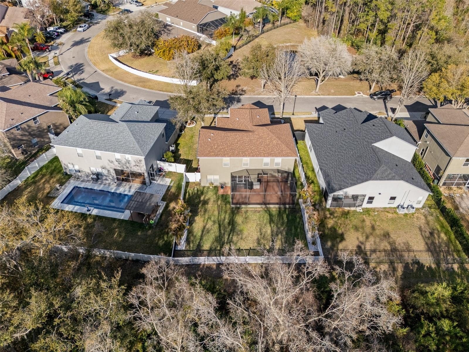 Major upgrades include a brand new roof installed September 2025, a 2023 air conditioning system with 10-year warranty, 2019 water heater, new interior and exterior paint completed in 2025, new smoke alarms installed in 2025, leaf guards on the gutters, updated sprinkler system running on reclaimed water, new sod in the front and backyard, and full home re-screening completed July 2025. Upstairs flooring is 100 percent bamboo. Both garage doors have been serviced and include a transferable 3-year warranty.