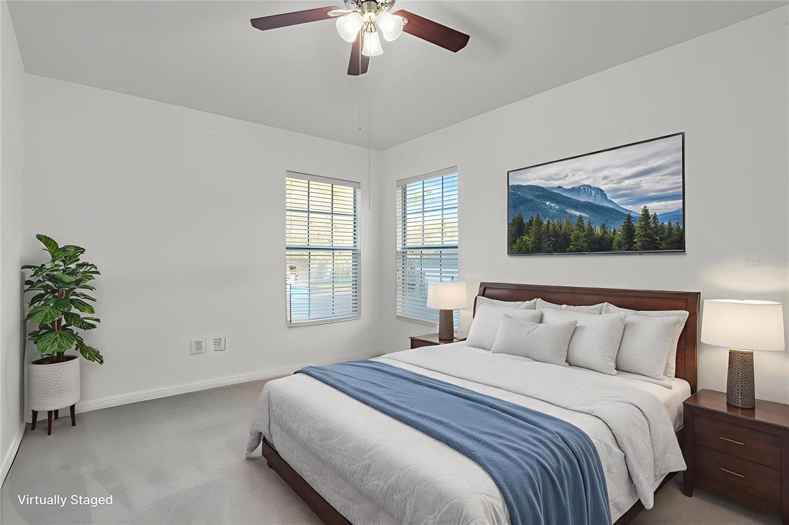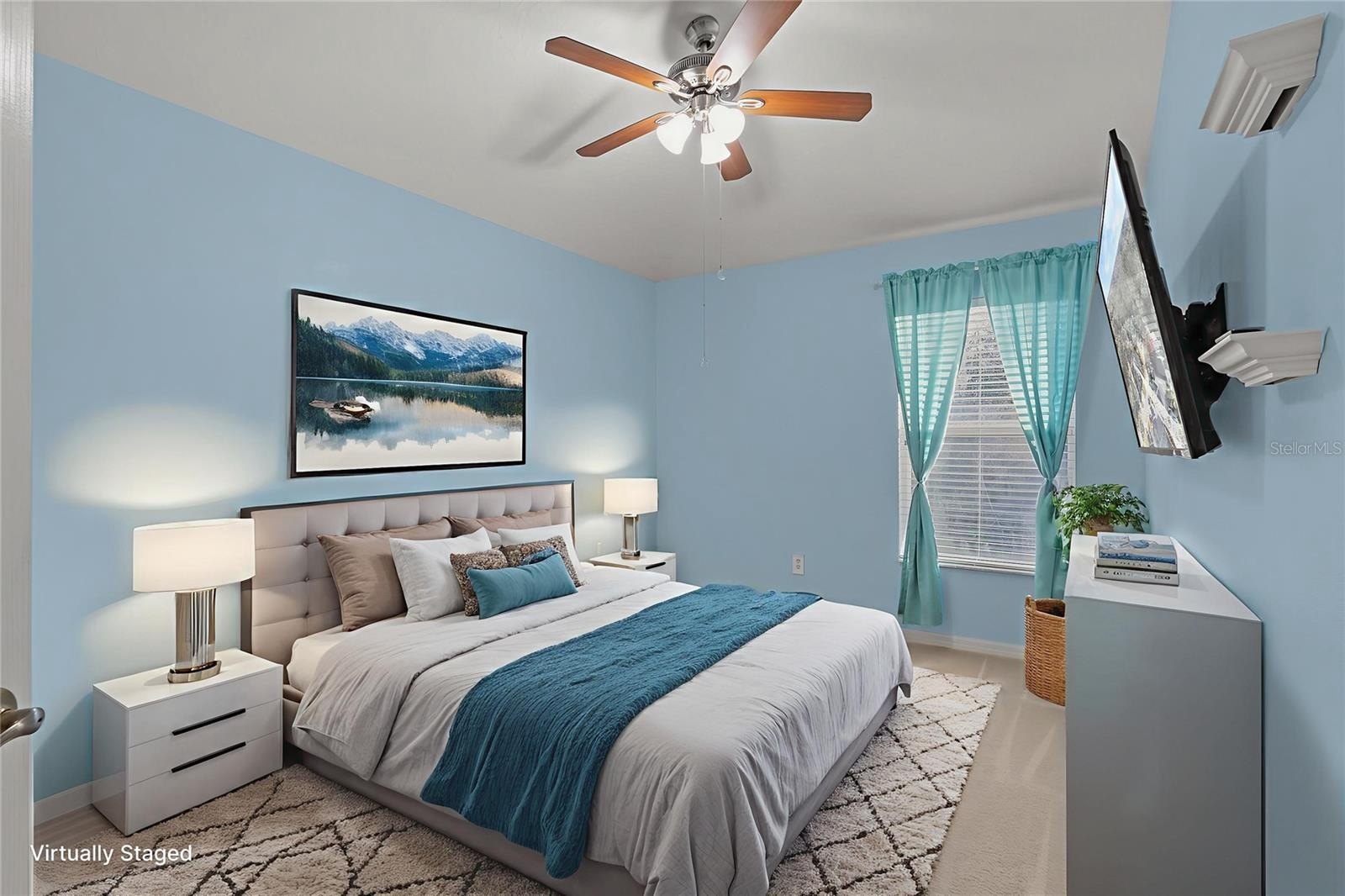 Upstairs, the layout unfolds with intention. At the top of the stairs you’ll find additional storage and a standalone full bathroom. Two bedrooms are situated to the left, while to the right you’ll discover one of the most impressive features of the home — a fully dedicated movie room. Designed for immersive viewing, this space is wired for up to 8K capability, includes built-in speaker infrastructure, dual 20-amp outlets, and a full bathroom with walk-in closet. The room is painted specifically for optimal viewing and can remain as a theater or easily function as an additional bedroom. The movie room equipment and setup may be left as is for an additional price. Please inquire for details.