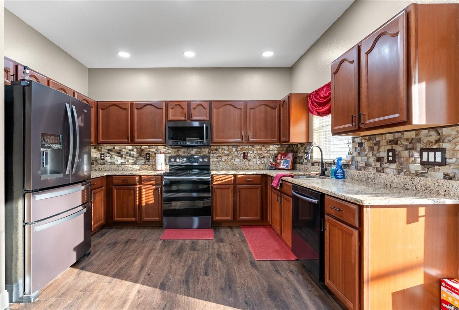 As you step through the front door, you are greeted by a formal living room and dining room that flow effortlessly into the spacious family room and open kitchen. The kitchen anchors the main living space with granite countertops, updated wood cabinetry, and updated appliances, all designed to blend functionality with style. The open layout makes it ideal for gathering and entertaining. Just beyond the kitchen, you’ll find a dedicated indoor laundry room thoughtfully positioned for everyday convenience. Also located downstairs is a private bedroom featuring a built-in desk and a full bathroom conveniently positioned nearby, making it perfect for guests or multigenerational living.