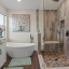 The primary suite is expansive and thoughtfully designed, offering two walk-in closets, including one custom-built with drawers, shelving, and shoe racks. A bonus en suite office provides a quiet workspace or flex area. The completely updated primary bathroom features imported luxury tile and stone straight from Italy, a soaking tub, quartz countertops, private water closet, linen closet, and abundant natural light.