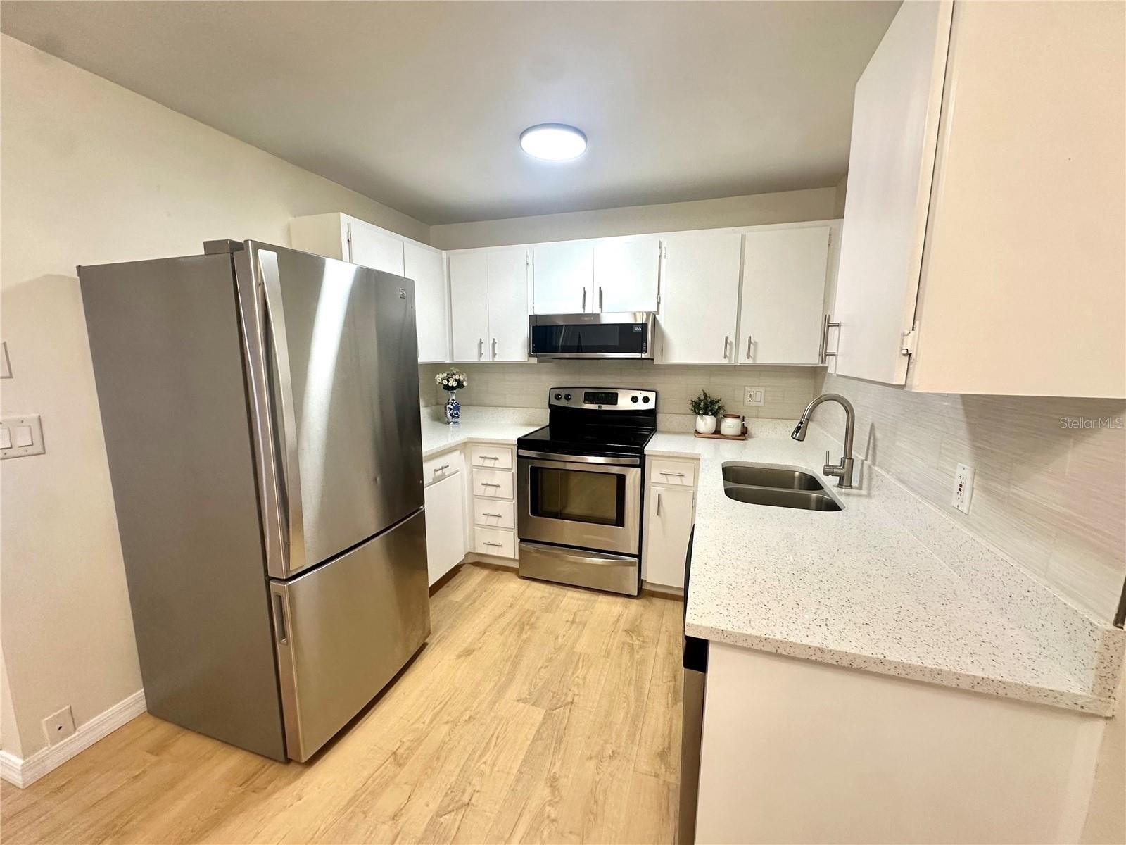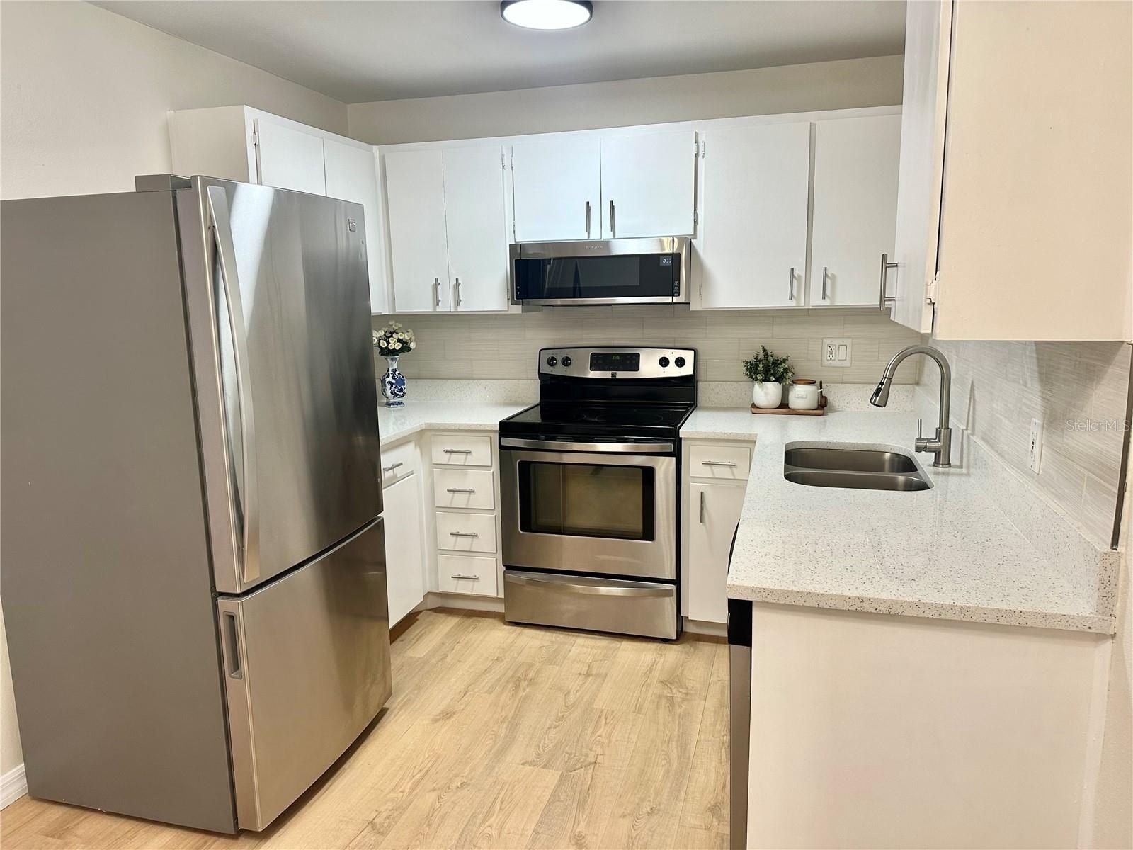 Fully renovated block construction 3-bedroom, 1-bath home with garage featuring a brand new roof (Jan 2026) and excellent major systems (updated electrical panel plus HVAC and water heater less than 5 years old). Move-in ready with completely new waterproof flooring installed ,modern finishes such as quartz, backsplash, stainless steel appliances and, designer inspired lighting and hardware throughout . Functional layout, inviting curb appeal and a large backyard with screened porch. Ideally located less than 5 minutes from Mitchell Ranch Plaza and others, offering convenient access to shopping, dining, parks, and everyday amenities in desirable New Port Richey.