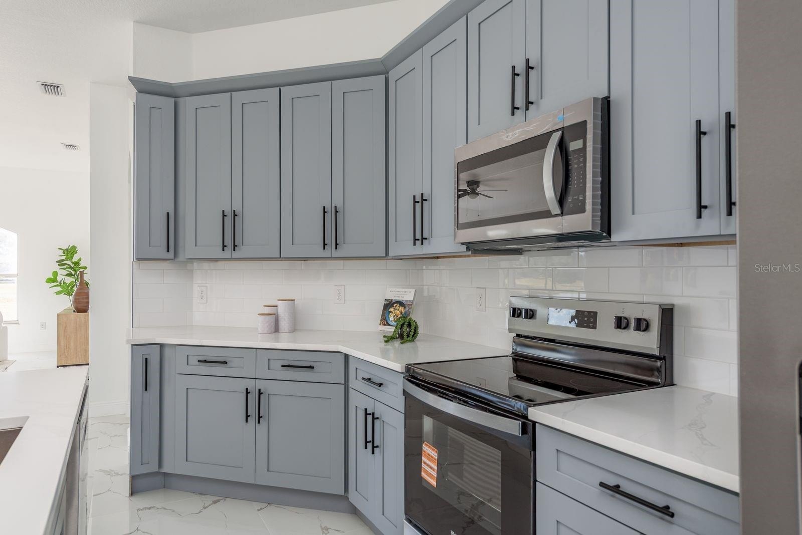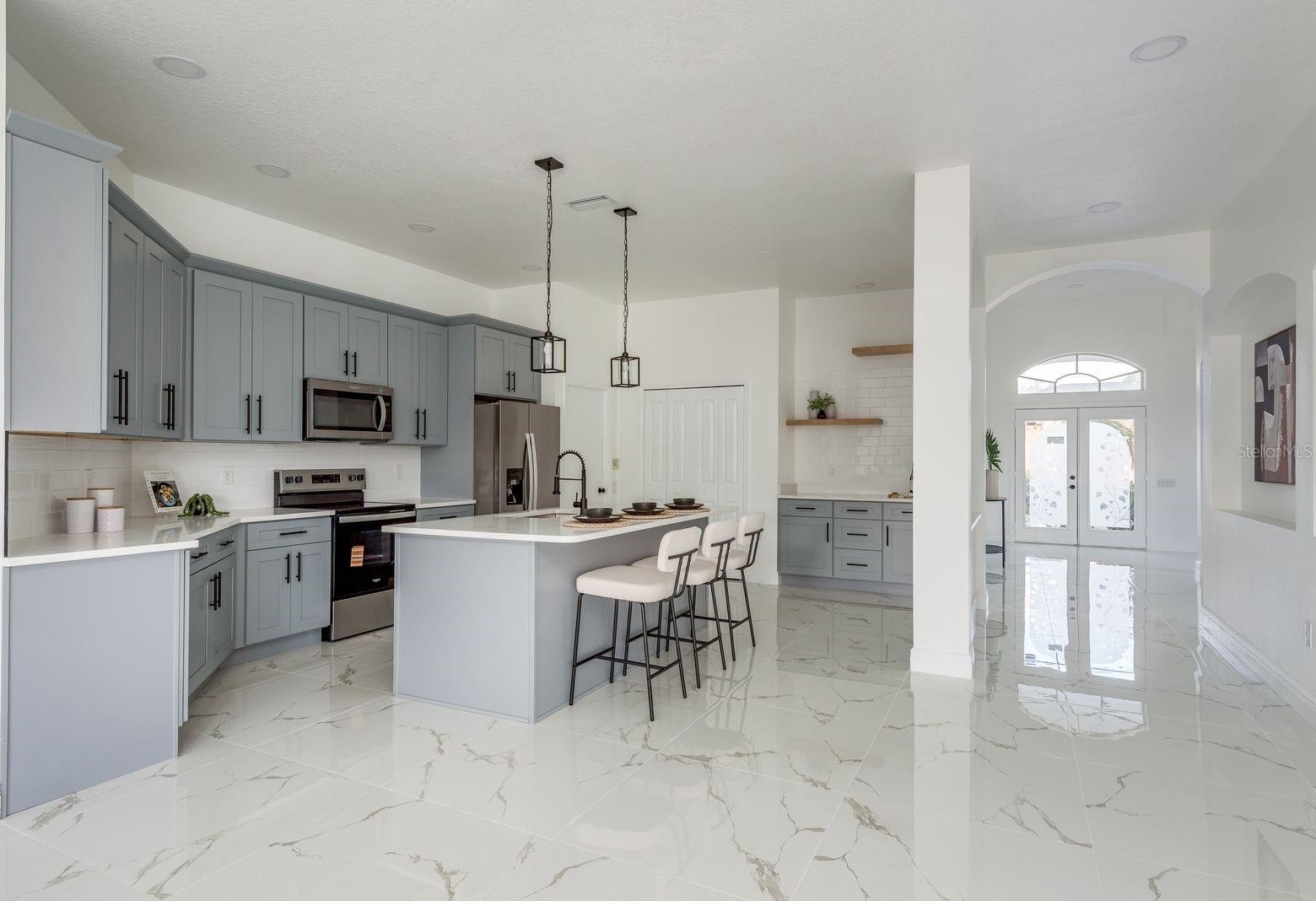 Welcome to this beautifully updated four-bedroom, two-and-a-half-bathroom home in Lexington Oaks of Wesley Chapel, offering 2,534 square feet of spacious living, a three-car garage, and modern upgrades throughout. Major improvements include a brand-new 2025 A/C and water heater, giving you comfort and peace of mind. Inside, you’ll find a light and bright interior with gorgeous tile flooring, high ceilings, and a thoughtfully designed split floor plan. The front living room and dining room provide elegant spaces for entertaining, while the expansive family room offers a welcoming gathering area for everyday living. The beautifully updated kitchen features new cabinetry, quartz countertops, stainless steel appliances, an island for prep or casual dining, additional pantry space, and updated fixtures and faucet for a polished, modern finish. The primary suite is a private retreat with vaulted ceilings, a huge walk-in closet with organizers, and a luxurious ensuite bathroom complete with a dual-sink vanity, stand-alone soaking tub, glass-enclosed tiled shower, and private water closet. The additional bedrooms are nicely sized and share an updated bathroom with a tub/shower combo and stylish mirrors with built-in lighting. Step outside to the covered back porch overlooking a tranquil pond view - perfect for relaxing and enjoying Florida’s beautiful weather year-round. Conveniently located near zoned schools, shopping, dining, golf courses, and with easy access to Interstate 75 for commuting to neighboring cities, this home offers the perfect blend of space, style, and location. Schedule your private showing today!