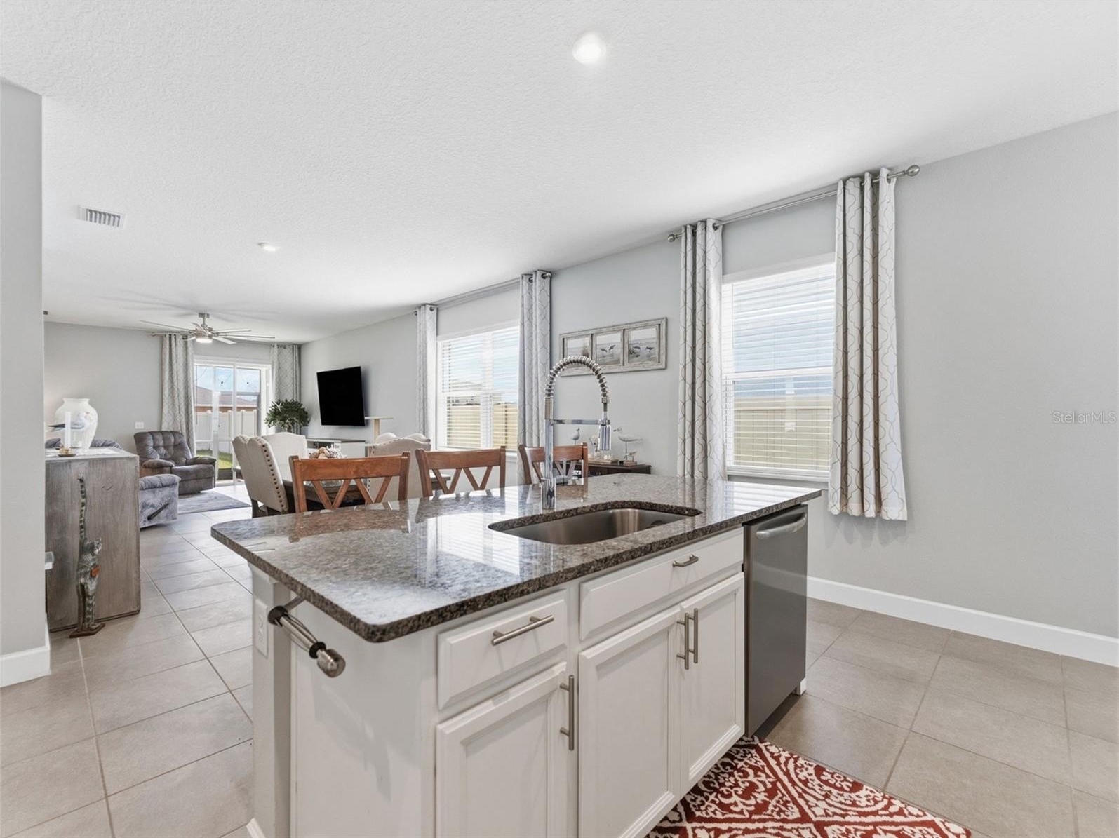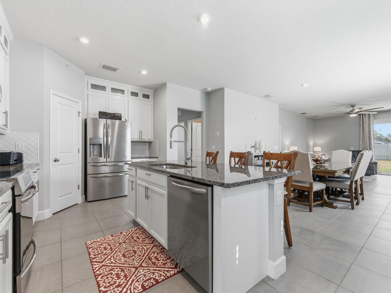 The spacious living area offers plenty of room to relax or host gatherings, flowing seamlessly into the dining space and kitchen. The kitchen is thoughtfully designed with ample cabinetry, generous counter space, and a functional layout that makes meal prep easy and enjoyable. Whether you’re preparing a quick weekday dinner or entertaining guests, this space is both practical and inviting.