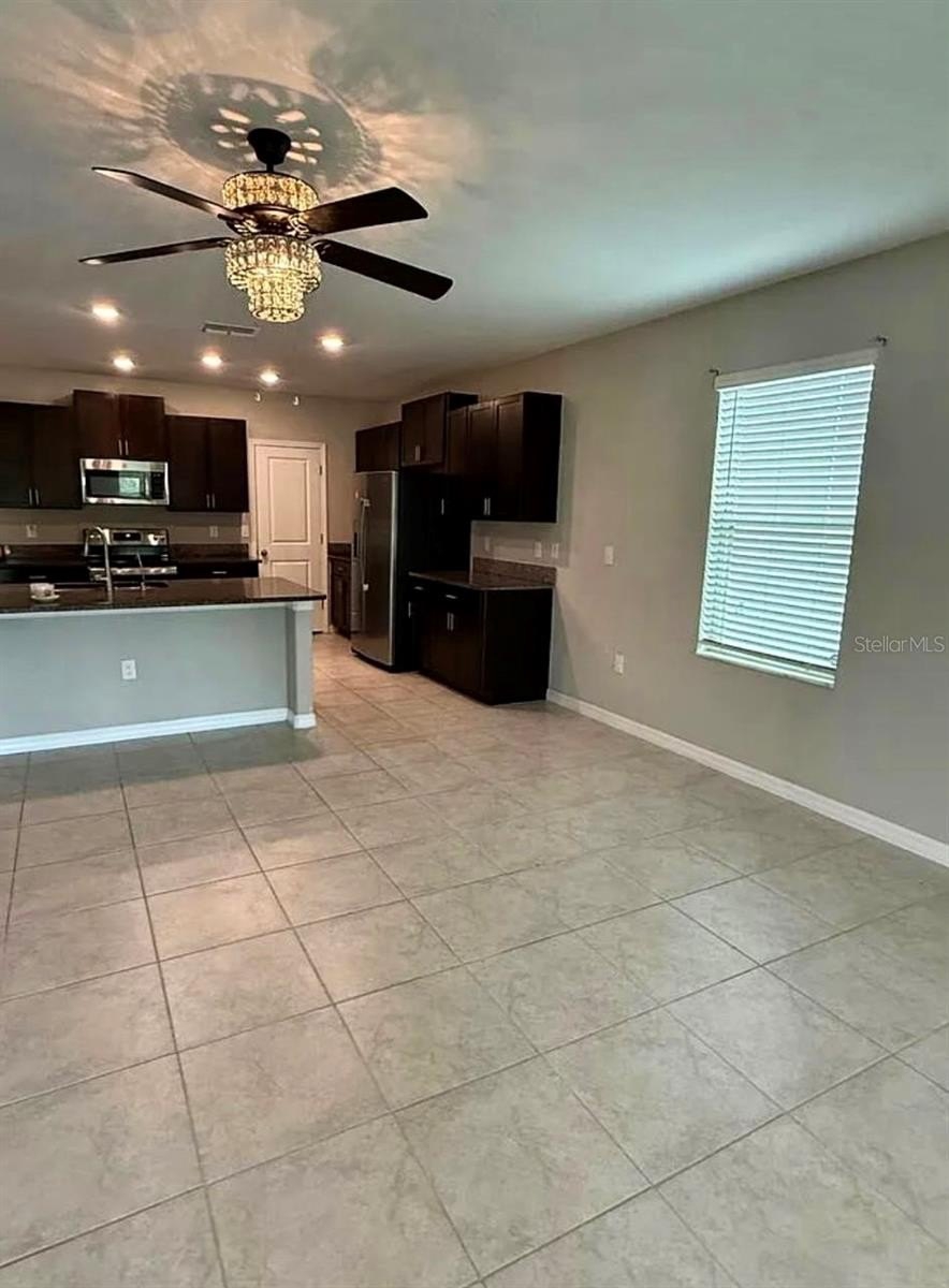 The main floor features a versatile flex space ideal for a home office, gym, or additional living area. The open-concept layout flows seamlessly into a modern kitchen complete with stainless steel appliances, ample counter space, and a large center island perfect for entertaining and meal preparation.