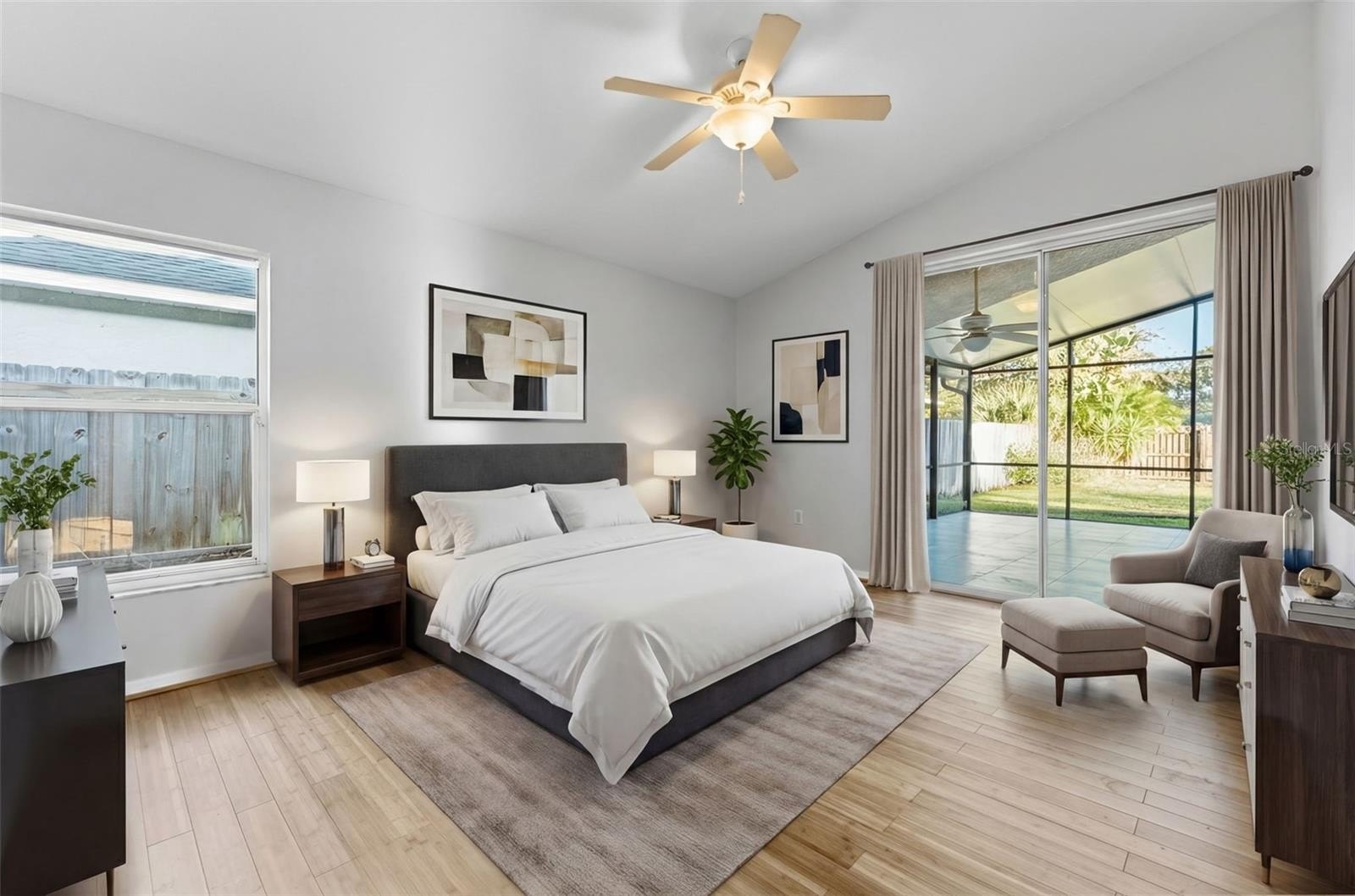 The spacious primary bathroom provides plenty of room to relax and unwind, while the oversized screened-in lanai with vaulted ceilings offers the perfect setting for entertaining or enjoying Florida evenings year-round.