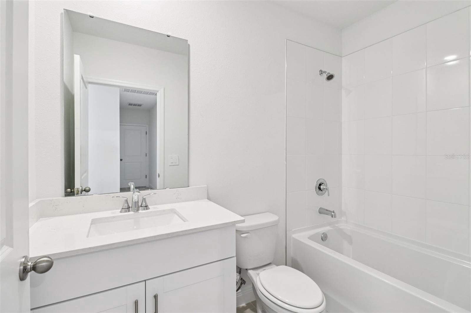 With 1,269 square feet of thoughtfully designed space, this home offers a bright, open layout featuring large rectangular light-colored tile flooring throughout the kitchen, great room, and bathrooms — creating a clean, modern aesthetic and easy maintenance. The continuous tile enhances the spacious feel of the main living areas.