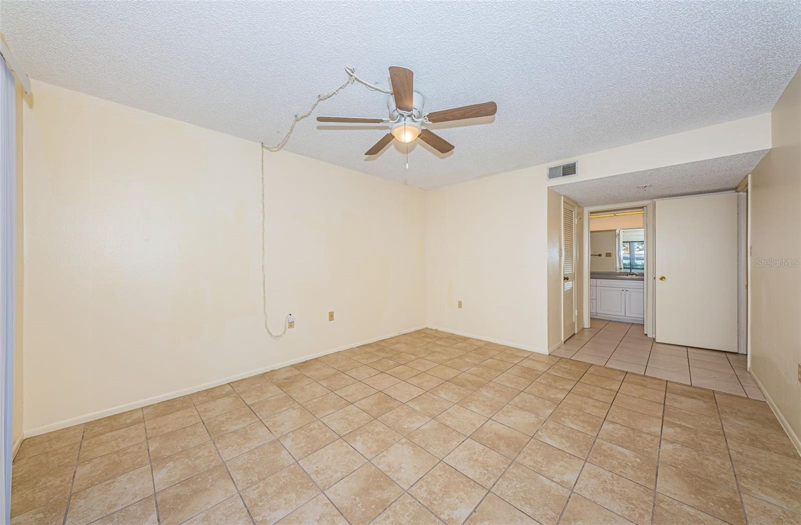 Both spacious bedrooms feature walk-in closets and direct access to a private covered patio—perfect for morning coffee or evening relaxation. The home features tile flooring and ceiling fans throughout, fresh interior paint, updated ceiling fixtures(dining area & hallway), and includes a full-size washer and dryer.