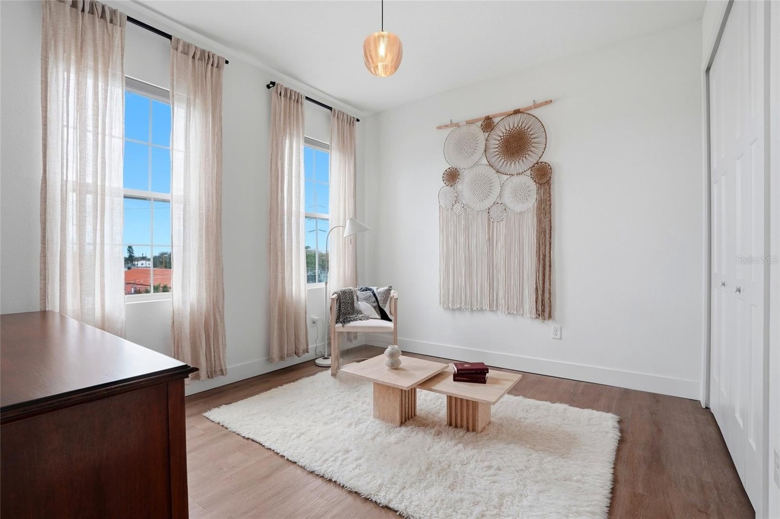 The top floor is dedicated to the owner’s retreat, a private sanctuary featuring a spacious, built-out walk-in closet and a beautifully appointed ensuite bath with dual vanities and clean, modern tile finishes. Washer and Dryer upstairs for connivence as well as the third bedroom and bath.