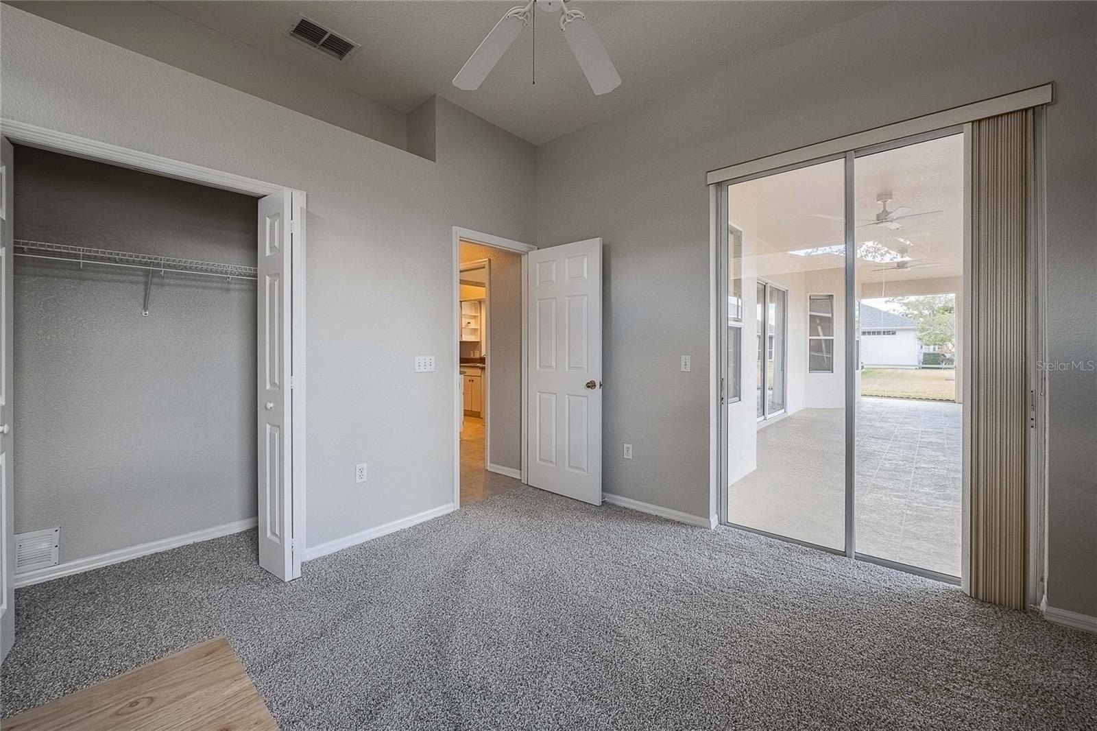 The primary suite includes a generous walk-in closet and an oversized ensuite bath with walk-in shower and garden tub. Step outside to an expansive screened-in back patio — perfect for relaxing or hosting gatherings year-round.