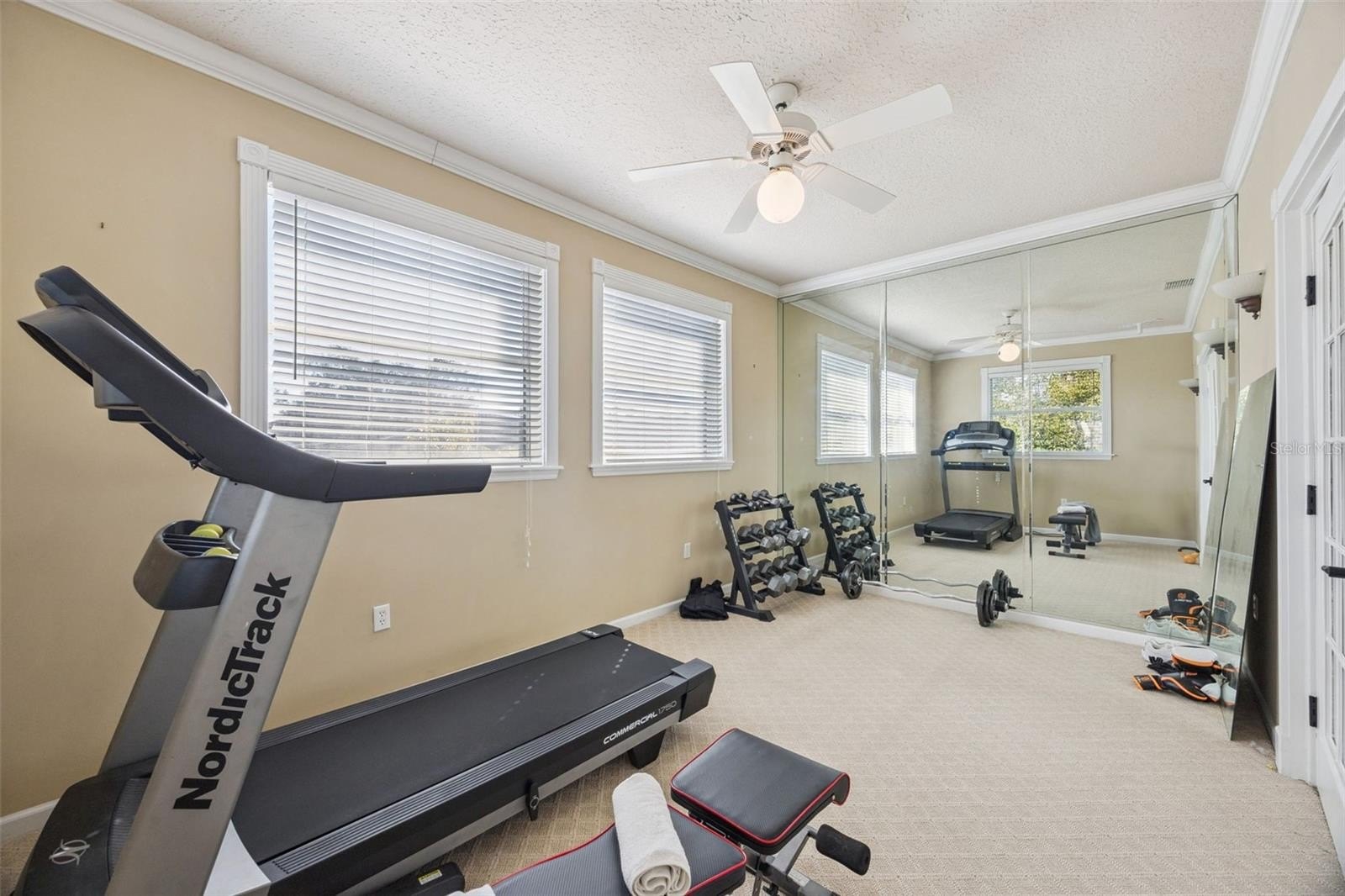 **This thoughtfully designed three-way split floor plan offers privacy and flexibility, including a theatre room that can easily serve as a fourth bedroom or private in-law suite complete with seperate entrance, wet bar, refrigerator, fully renovated bathroom with shower, perfect for mulitgenerational living or guests. A seperate hallway off the family room offers an additional bedroom and full bathroom, and a conveniently located fully furnished laundry room. Upstairs, you’ll find a large bonus room, dedicated fitness room, 3rd bedroom with full bathroom—perfect for guests, teens, offering exceptional flexibility.