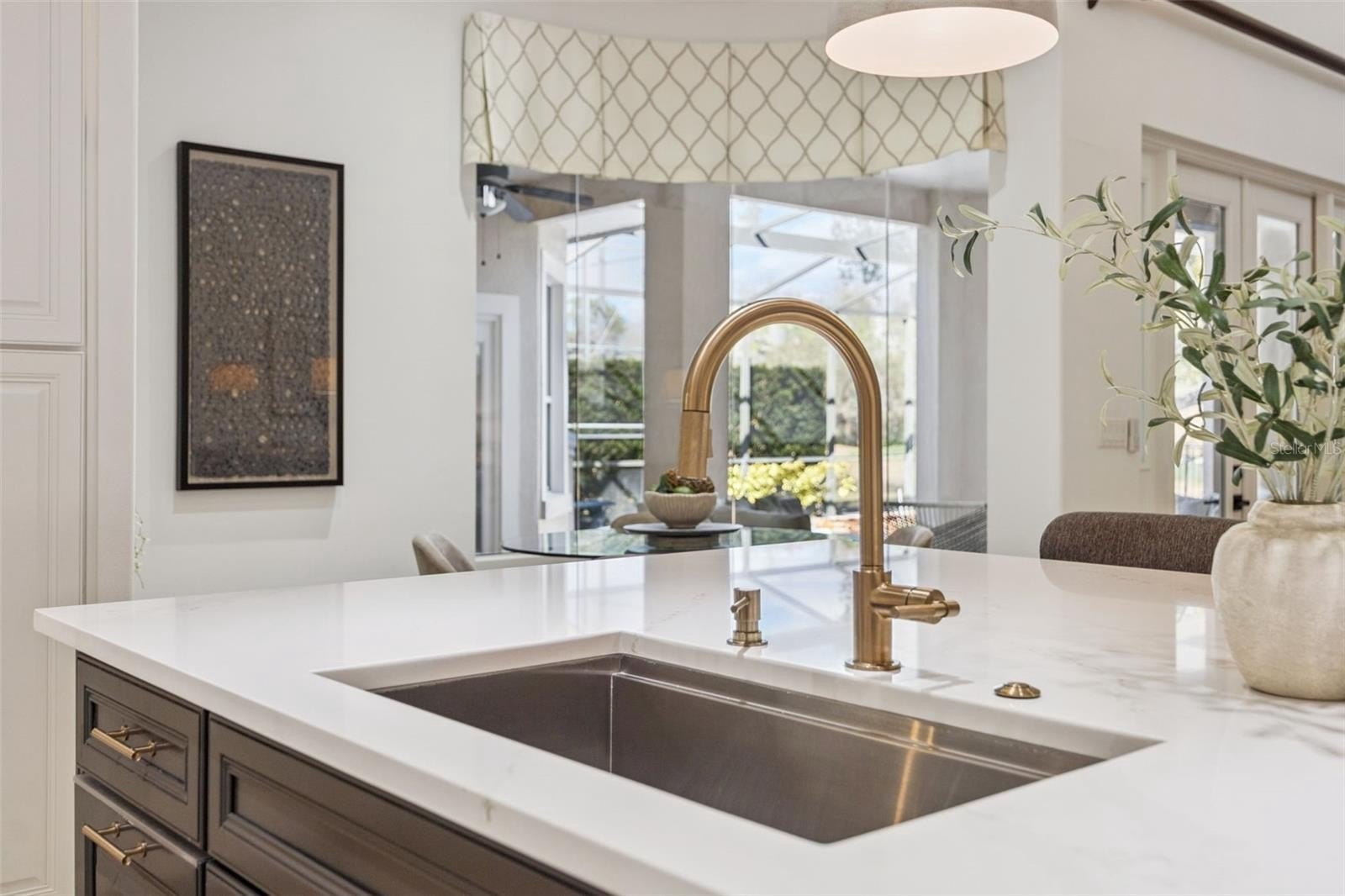 **From the moment you enter, this home impresses with new plank tile flooring, tall 20 ft ceilings, highlighted by decorative windows, a fresh neutral interior palette, and carefully curated finishes throughout including oil rubbed bronze hardware, decorative Niches, modern rounded corners, contemporary lighting and ceiling fans. The heart of the home is the Chef-Inspired kitchen featuring a custom gathering island with extensive storage, striking quartz countertops and backsplash, newer stainless-steel appliances, custom pantry cabinetry, and a sunlit breakfast nook - all seamlessly overlooking the grand family room.