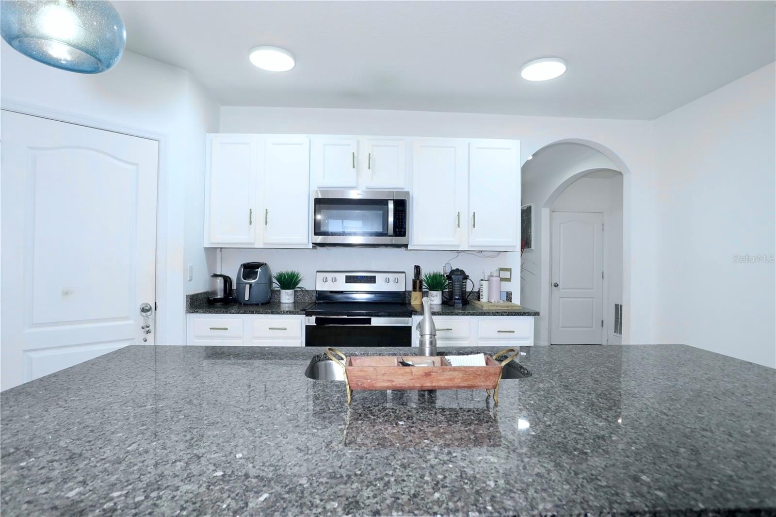 Inside, the open-concept layout seamlessly connects the kitchen, dining, and living areas—ideal for both everyday living and entertaining. The kitchen features granite countertops, stainless steel appliances, and generous cabinetry, providing both function and style. A split-bedroom floor plan ensures privacy for the primary suite, complete with a spacious walk-in closet and en-suite bath.