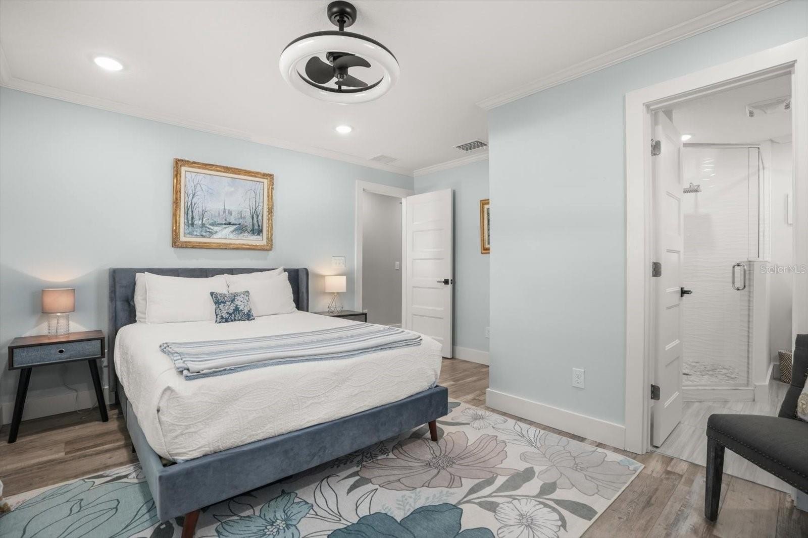 Inside, the home showcases luxury vinyl flooring throughout the main living areas, crown moulding, and 6-inch baseboards that elevate every room. Recessed lighting and updated fixtures brighten the space, complemented by re-vented A/C, new window blinds, and all-new interior doors and hardware. All three bathrooms have been fully updated with stylish finishes, including a private en-suite bath for one of the guest bedrooms—perfect for hosting family and friends in comfort.