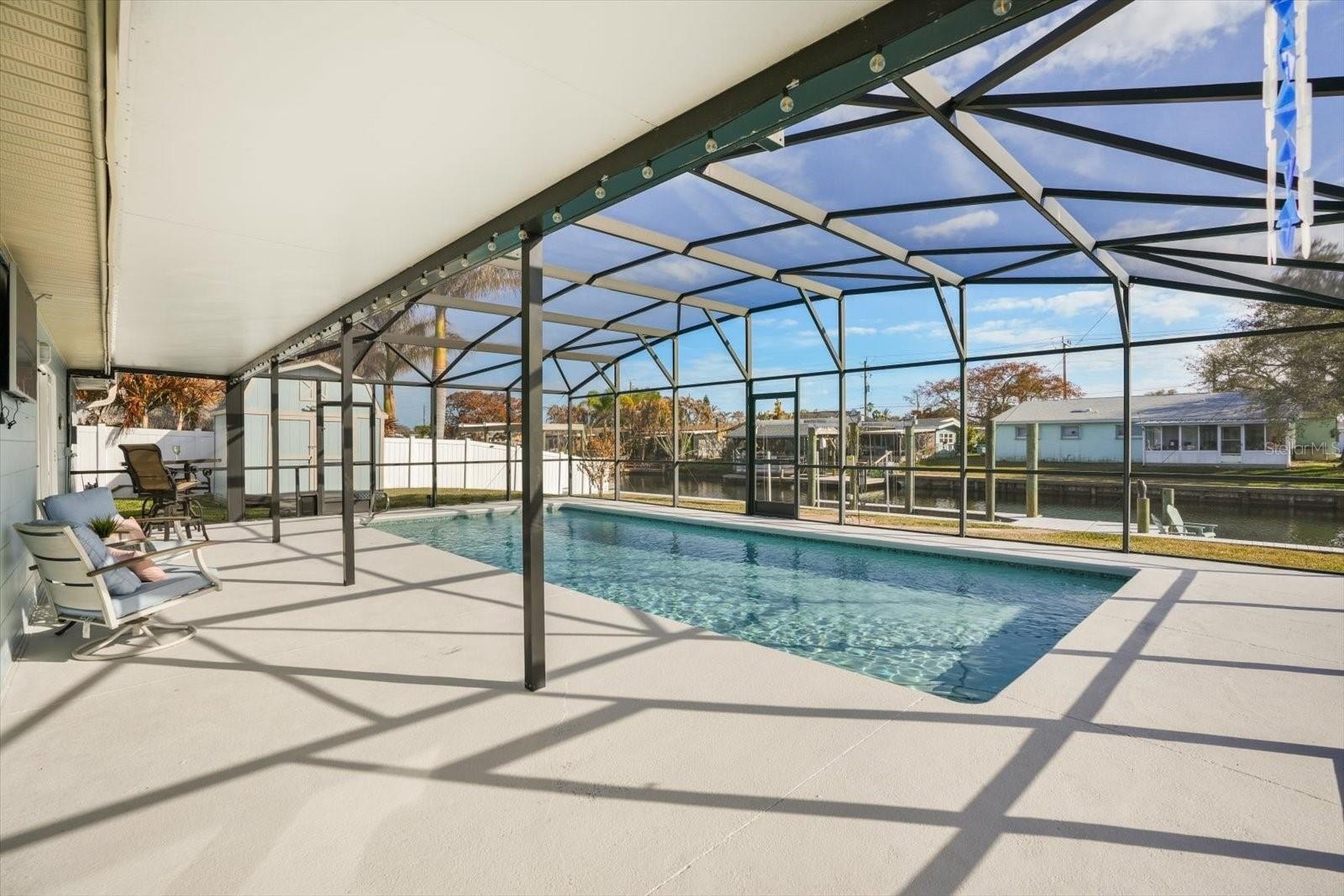 Step outside to your screened-in pool oasis, resurfaced in 2025 with a new pool pump and skimmer, surrounded by fresh landscaping and a new irrigation system in both the front and back yards. Paver walkways lead from the pool enclosure to the shed and down to the water, where a brand-new seawall, dock, kayak dock, and 10,000 lb boat lift await—all backed by a 60-year transferable warranty. A termite bond with Sentricon stations provides added peace of mind. This exceptional waterfront property offers the perfect blend of luxury upgrades, boating lifestyle, and relaxed coastal elegance.