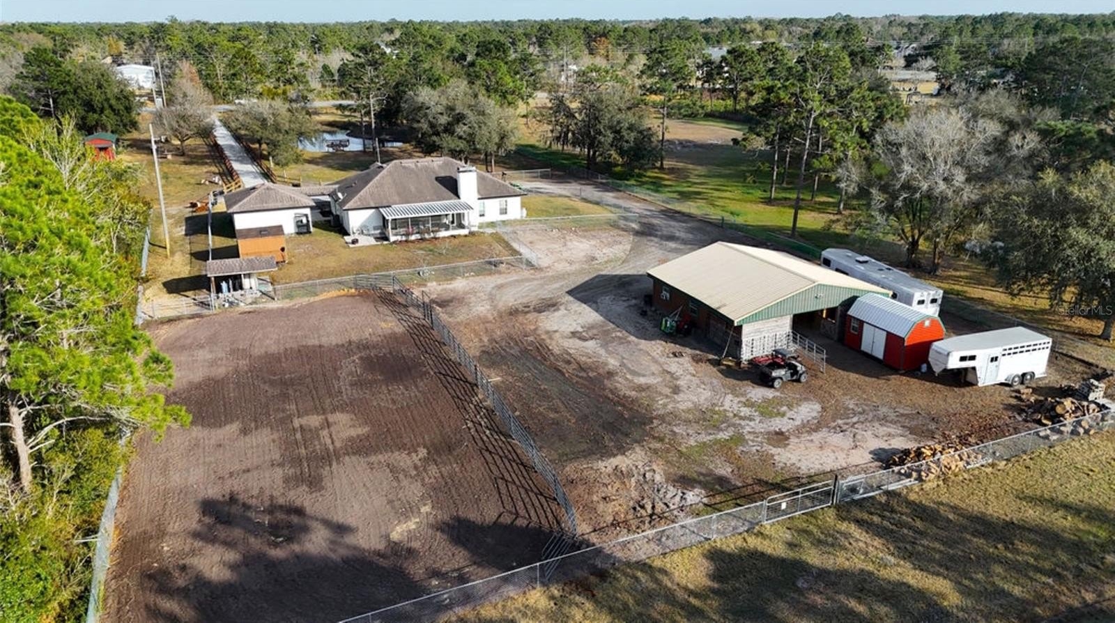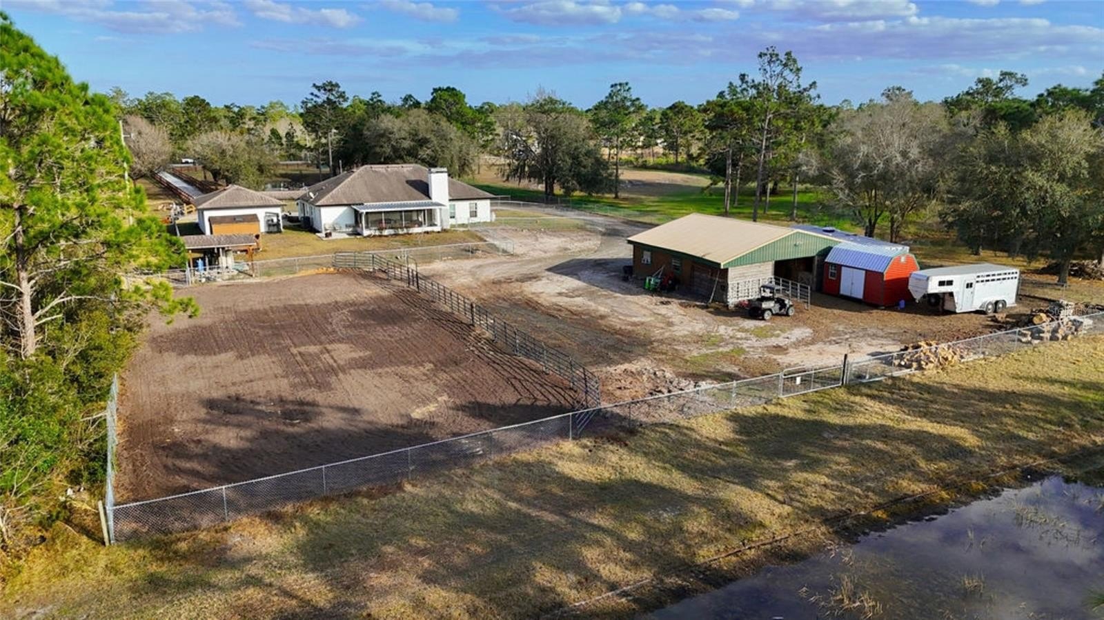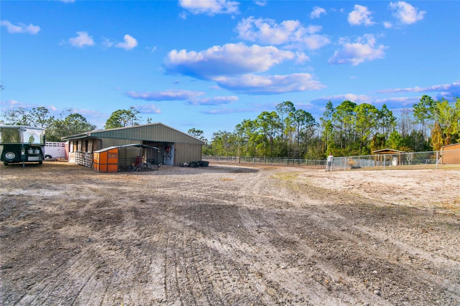 Welcome to your private equestrian retreat. This spacious 4-bedroom, 2-full bath home offers a flexible split floor plan with the 4th room that easily functions as a bonus room. Vaulted ceilings enhance the open feel of the home, while the cozy gas fireplace creates the perfect focal point for comfortable living. Chef's kitchen is designed for both everyday and living. Fully functioning property currently set up for all of your farm animals. Enjoy a 60x120 riding area, a three-stall barn complete with tack and feed rooms, an additional shed with storage. With access to mile of riding trails directly from the property, this is truly a horse lover's dream. Relax by your private pond with dock. A detached garage provides additional storage and workspace options. Whether you're looking for a working farm, equestrian property, this unique property offers endless possibilities while still being conveniently located in Orlando.