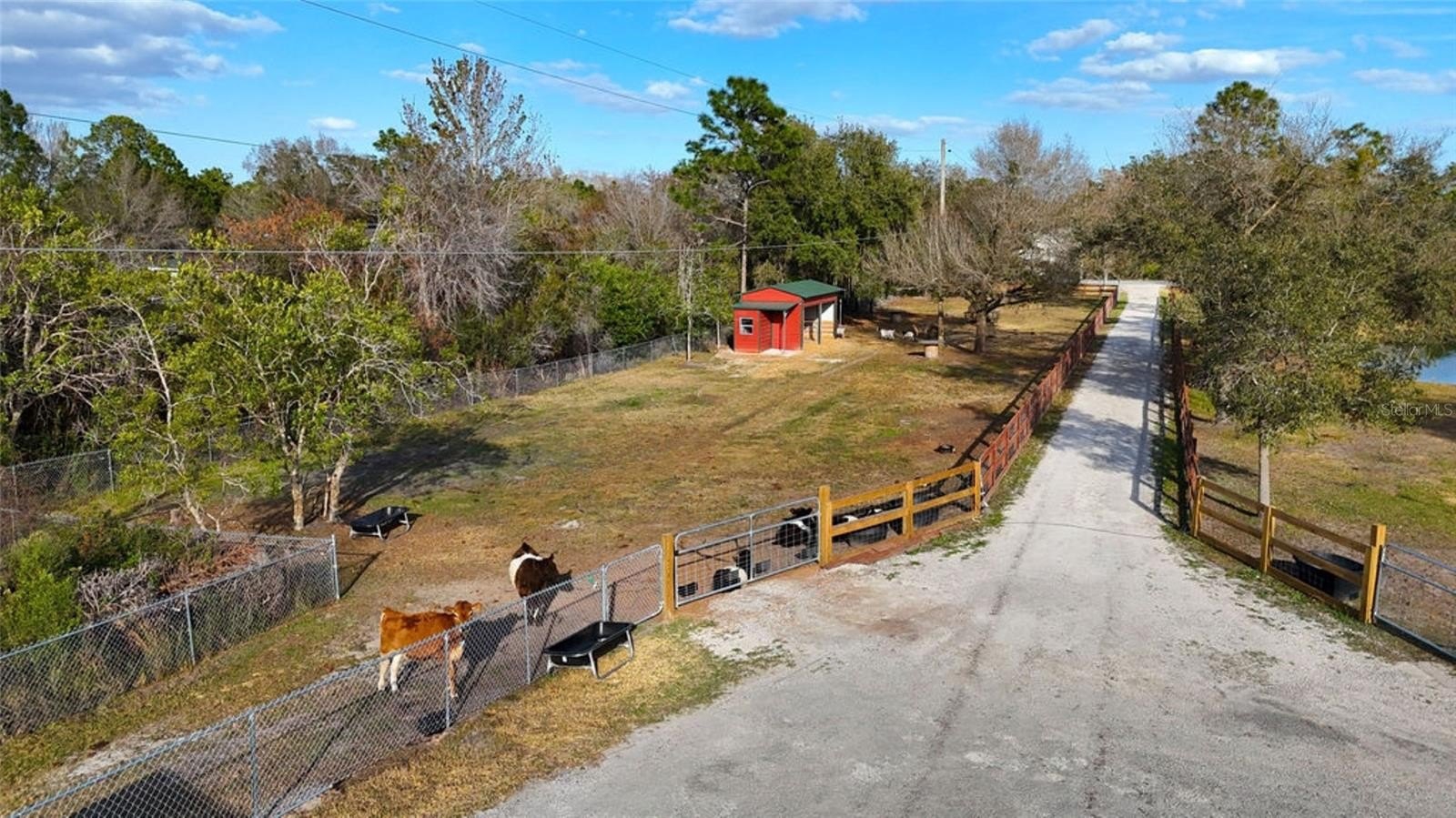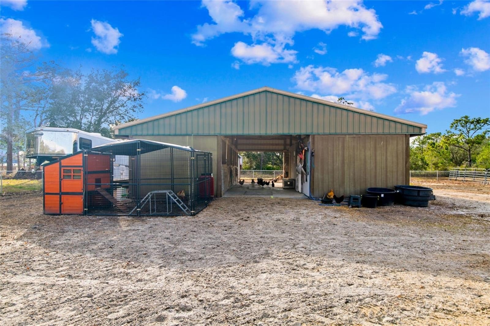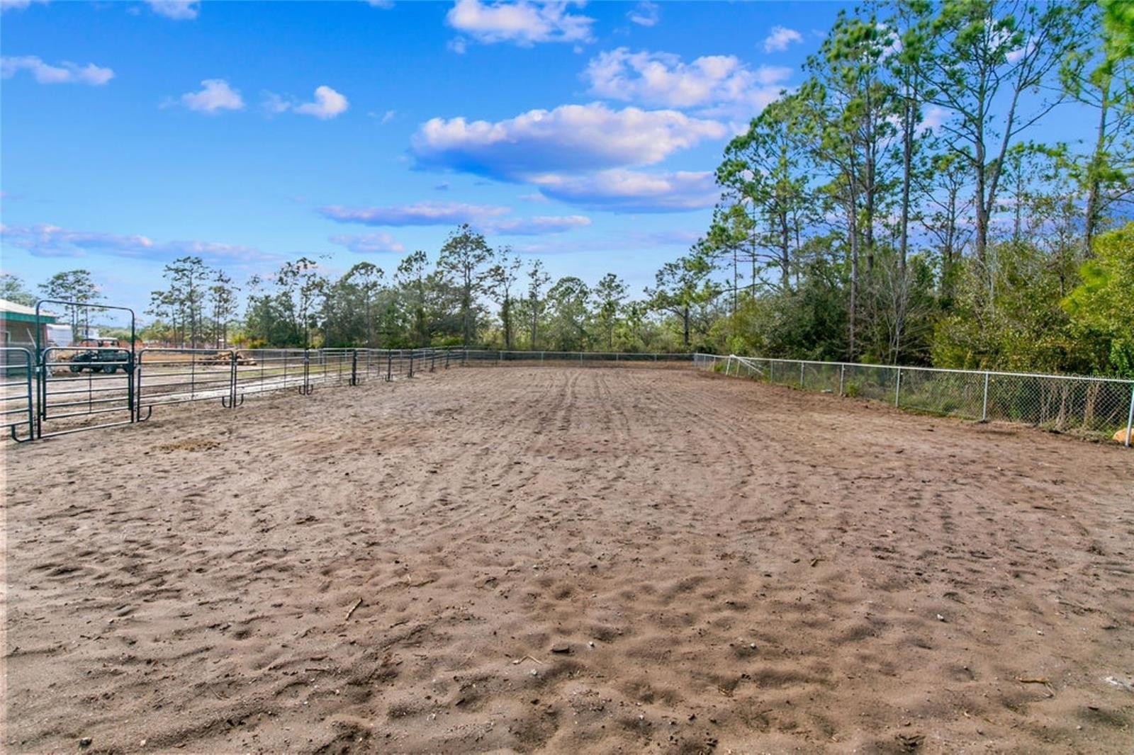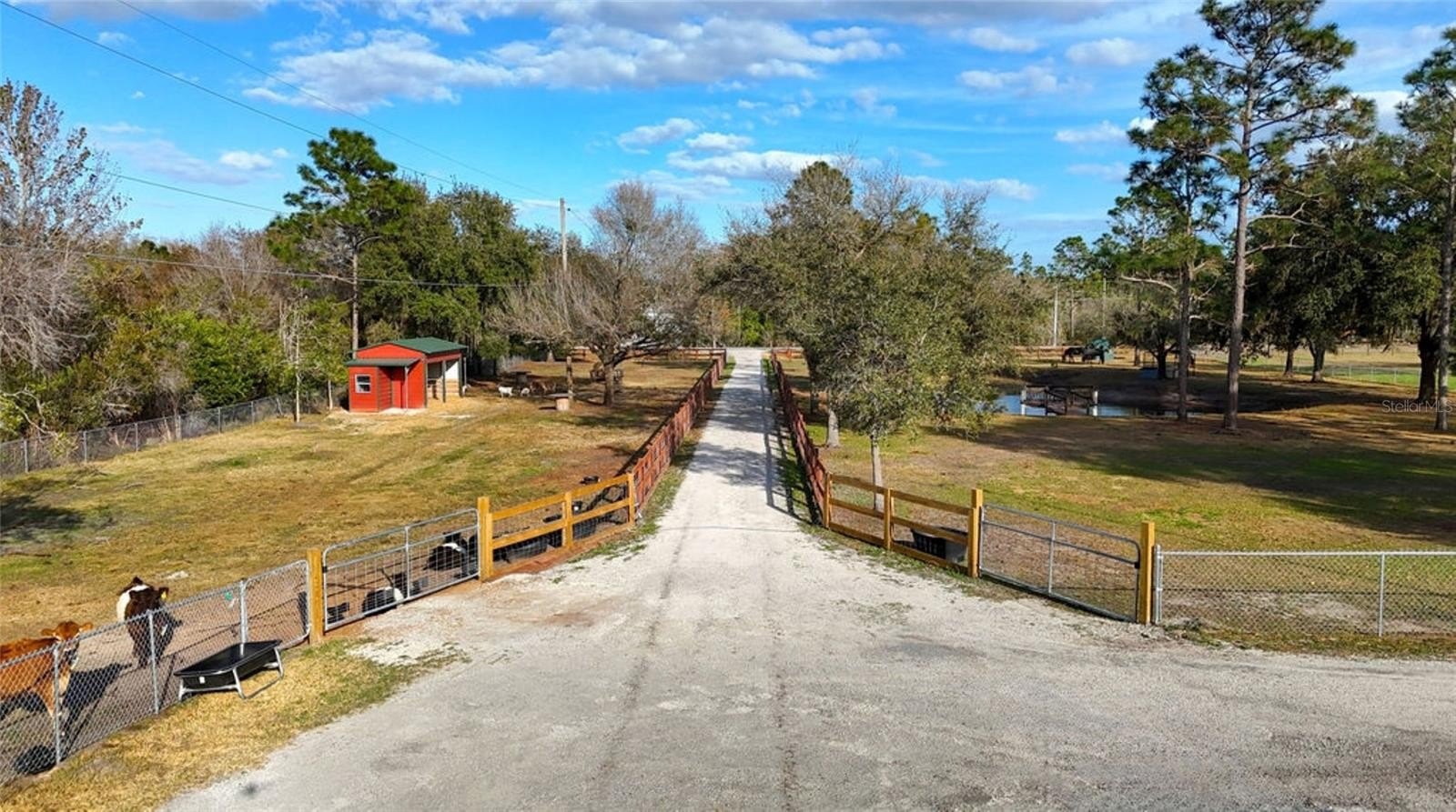 Welcome to your private equestrian retreat. This spacious 4-bedroom, 2-full bath home offers a flexible split floor plan with the 4th room that easily functions as a bonus room. Vaulted ceilings enhance the open feel of the home, while the cozy gas fireplace creates the perfect focal point for comfortable living. Chef's kitchen is designed for both everyday and living. Fully functioning property currently set up for all of your farm animals. Enjoy a 60x120 riding area, a three-stall barn complete with tack and feed rooms, an additional shed with storage. With access to mile of riding trails directly from the property, this is truly a horse lover's dream. Relax by your private pond with dock. A detached garage provides additional storage and workspace options. Whether you're looking for a working farm, equestrian property, this unique property offers endless possibilities while still being conveniently located in Orlando.