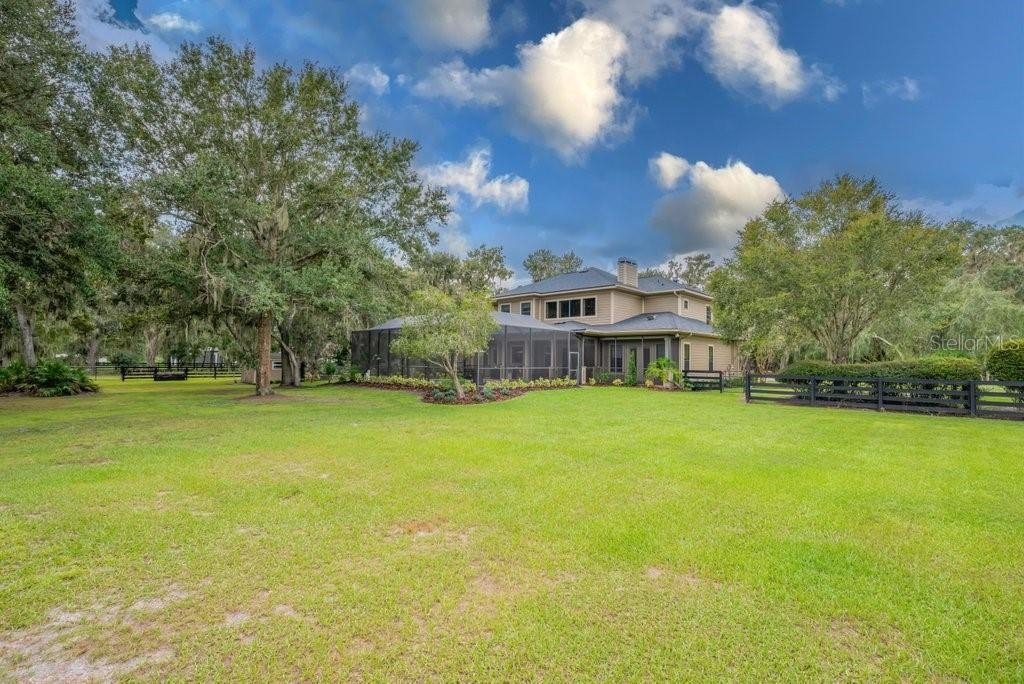 STUNNING LUXURY ESTATE feels like it’s straight out of the pages of Southern Living Magazine with its elegant modern design and picturesque surroundings. This custom home is nestled on 5.76 fenced acres overlooking an unspoiled natural setting Conveniently located in the Doe Creek / Fishhawk Ranch vicinity. Escape to your own majestic peaceful paradise; this one has it all!! it doesn’t get much better than this!! You’ll enter through your private electric gate and drive up the winding driveway to this extraordinary and impressive 3940 sq ft custom home (5650 sq ft total) offering 4 bedrooms + 4 full bathrooms + formal sitting and dining rooms + game room + an expansive oversized 3-car attached garage + an unrivaled outdoor living space with private resort-style pool PERFECT for entertaining your family & friends! A 17KW home generator guarantees you are never without power. Your new home offers an OPEN FLOOR PLAN with high ceilings making it light, bright and spacious! You have upgrades everywhere including plantation shutters throughout the entire home. The spacious chef’s gourmet kitchen is the heart of this home; it is open to the large great room with volume ceilings, faux wood beams and stone fireplace + large windows offering views of your inviting pool and beautiful property. The fabulous kitchen is chef's dream with gas cooktop, double ovens, pendant lighting, handsome wood cabinetry+ butler’s pantry with a wine refrigerator + a dry bar/coffee bar. All of your bedrooms are generously sized with large closets. Recent improvements include new roof 2024, HVAC replaced 2018-2022, new hot water heater 2026, pool resurfaced 2025…this home is a must see. Step outside and enjoy an expansive covered patio and a sparkling pool and spa a wonderful space for making memories. Beyond your pool you can relax and unwind around your outdoor fireplace overlooking your picturesque property! NO HOA! Bring the boat, RV, horses, pets, bring it all! Located close to everything...yet tucked away w/privacy & peacefulness! Call today to schedule your private showing of this unforgettable "straight-out-of-magazine" home!!