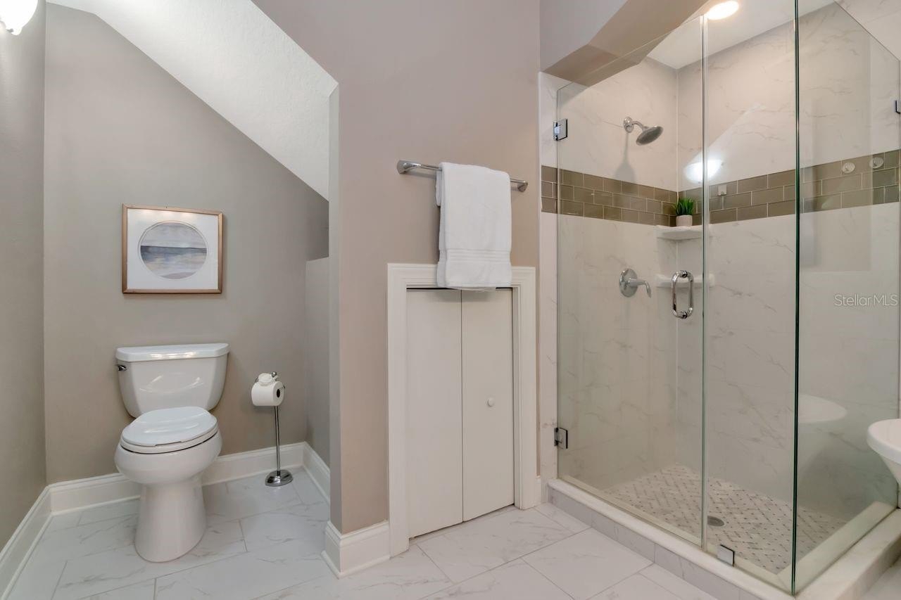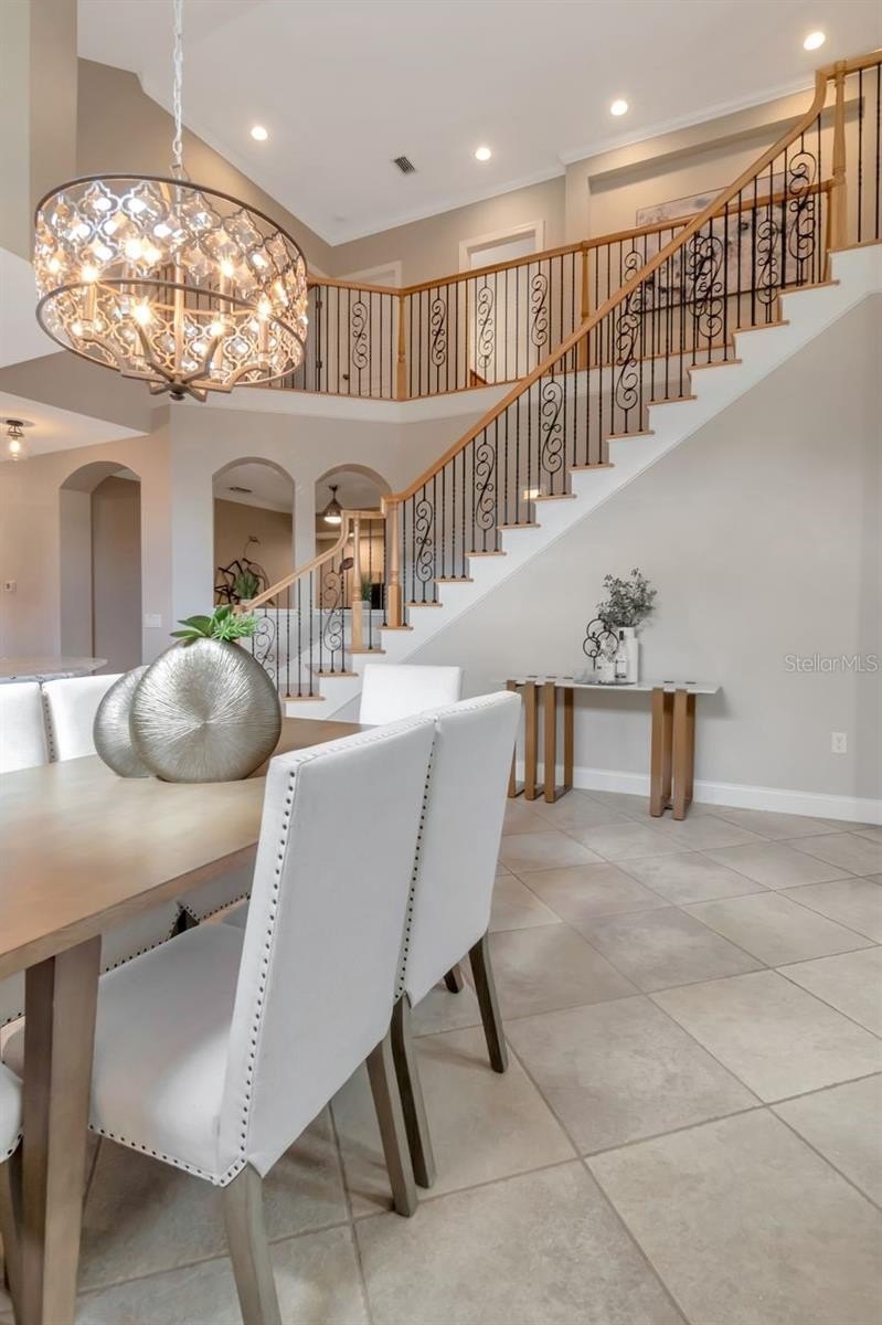 Welcome to this stunning, rare end unit in the exquisite maintenance-free, gated Sabals Townhome community in Trinity, a design masterpiece featuring 3 bedrooms, 2.5 bathrooms, and a sweeping wrought iron staircase that serves as a dramatic centerpiece. This meticulously maintained home boasts unique architectural features, 20' volume ceilings, and elegant arches complemented by plantation shutters on all doors and windows and fresh paint throughout. The best part is all your living needs are downstairs and only the 2 guest rooms and full bathroom is upstairs. The completely remodeled gourmet kitchen is a chef’s dream, equipped with high-end KitchenAid stainless steel appliances, hardwood soft-close dovetailed cabinets, upgraded granite counter height countertops, and an Aquasona kitchen filtration system. Tile floors flow seamlessly through the main living spaces, leading to the master bedroom and office which feature rich hardwood flooring. All bedrooms offer the convenience of walk-in closets, while the completely remodeled master bath provides a spa-like retreat with a soaking tub and hardwood double vanity. Modern upgrades abound, including skylights, all new light fixtures, fans, and faucets, as well as a hot water on-demand system (2017), AC (2017), and a recently replaced water softener. Step outside to the newly rescreened, oversized paver lanai to enjoy a private preserve view with no rear neighbors, offering ultimate tranquility and plenty of space for entertaining. This home provides abundant storage, including a 2-car garage with built-in cabinet storage, and upstairs storage room. It is perfectly situated near the community’s own Cypress preserve and gazebo, which leads directly to the sparkling pool and cabana. NOT in a FLOOD ZONE, NO CDD, LOW HOA. Approximately 20 minutes to historic downtown New Port Richey, local beaches, restaurants, entertainment venues, top rated schools and only 35 minutes to Tampa airport. Schedule your showing today before it's gone!