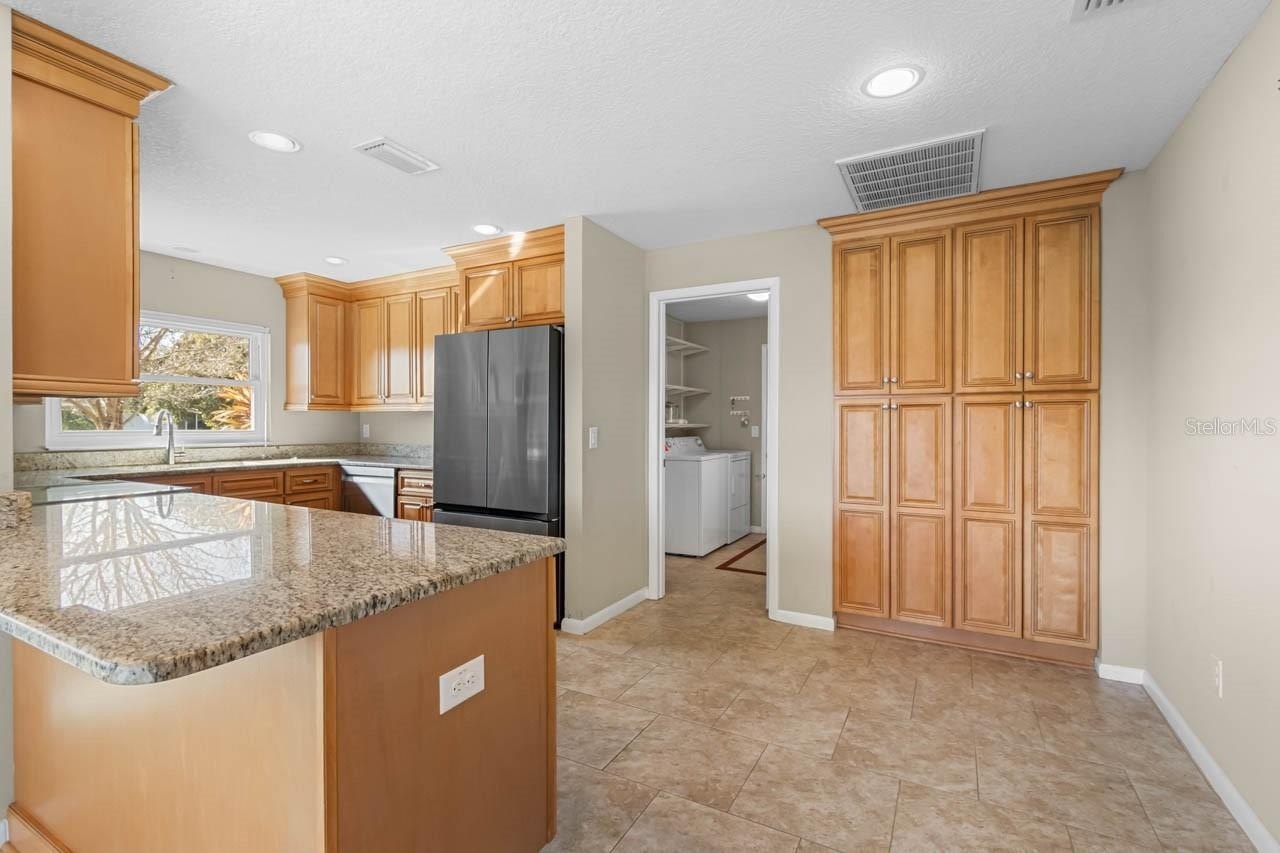 Inside, the home spans over 2,300 sq. ft. of bright, open living space with tile flooring throughout and a kitchen equipped with upgrade appliances and recessed lighting. The sellers have invested over $60,000 in premium "peace-of-mind" upgrades, including hurricane impact/energy-efficient windows, a 2-year-old high-efficiency HVAC system, and two mini-split units for custom climate control in the primary suite and the 2-car garage. So you can stay extra cool when working on a project in the garage this summer! Additional high-value features include a water softener, a high-tech water heater, and upgraded attic insulation for maximum efficiency.