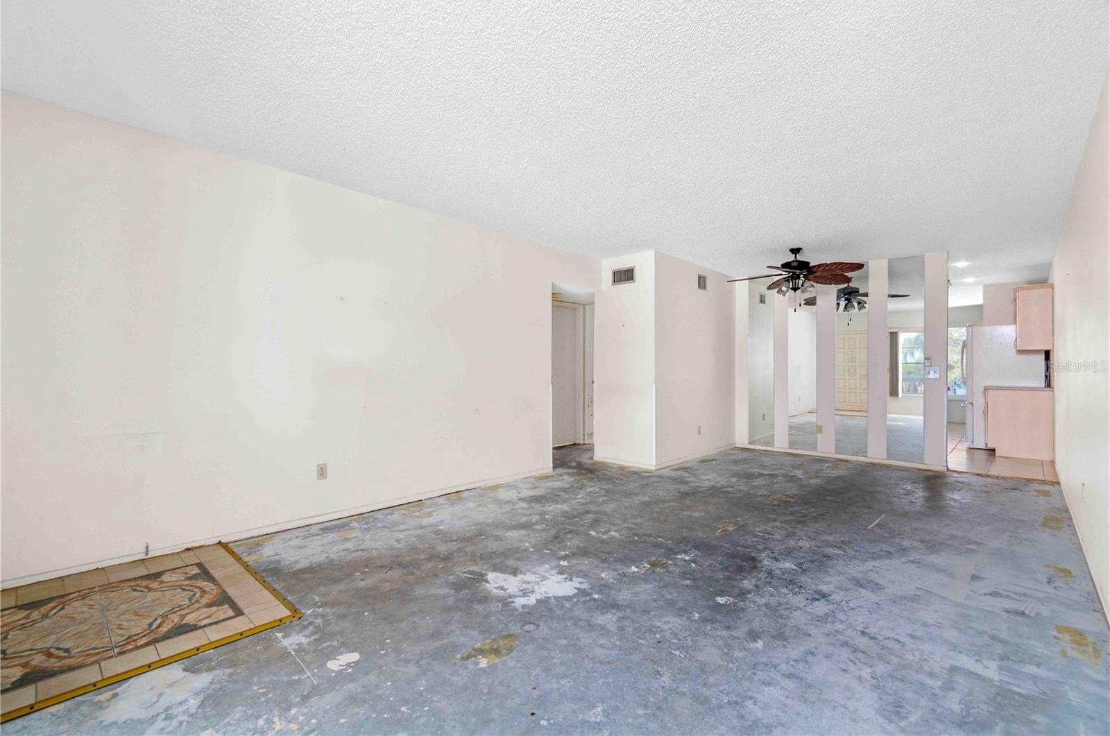 Inside, the kitchen has already been updated with a modern layout, recessed lighting, and a water filtration system, while the living room, dining area, and bedrooms are ready for your personal design vision, as carpeting has been removed to allow installation of flooring of your choice. Both bathrooms feature updated vanities and commodes, providing a head start on your renovation plans. The spacious primary suite includes dual closets and a private en-suite bath, and the flexible bonus room offers additional storage while overlooking the rear courtyard. This top-floor residence enjoys the benefit of no upstairs neighbors and is conveniently located just steps from the elevator corridor and mailboxes, making daily living effortless. Assigned parking is included for added convenience.