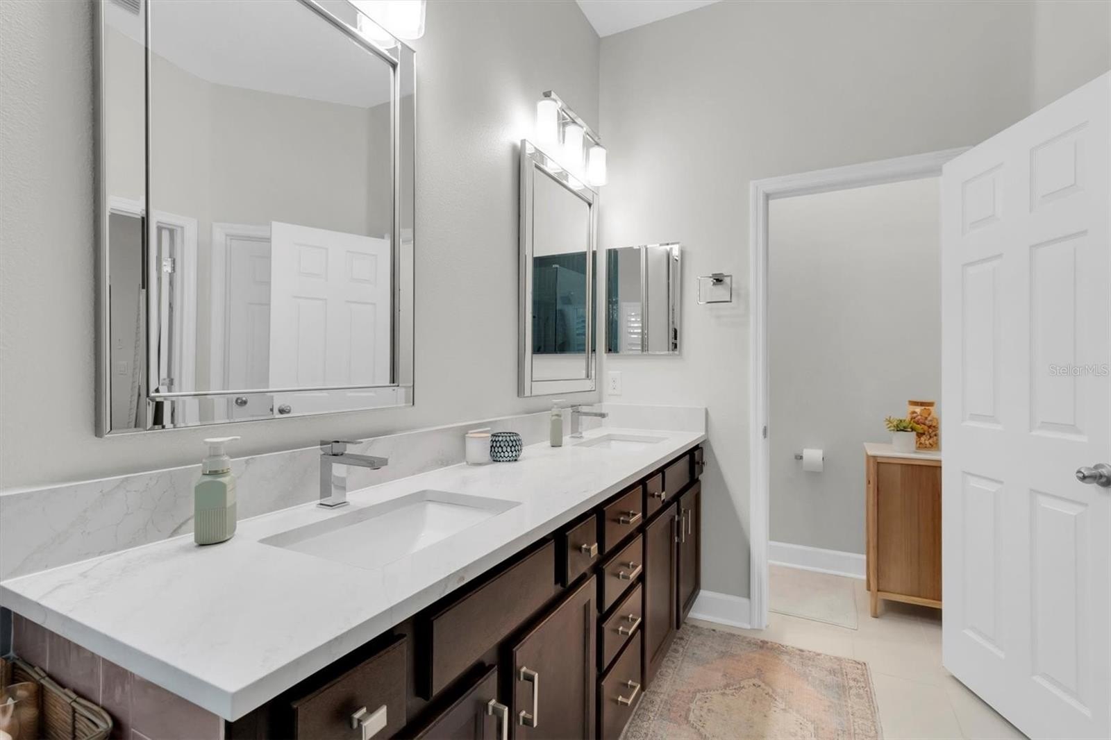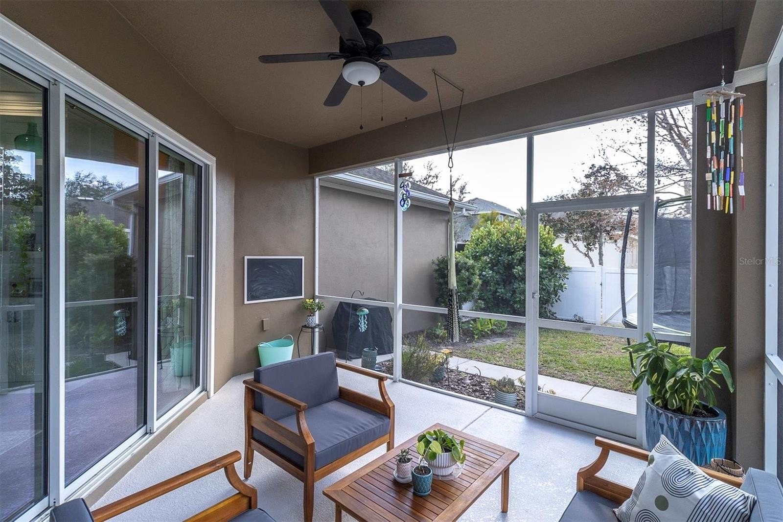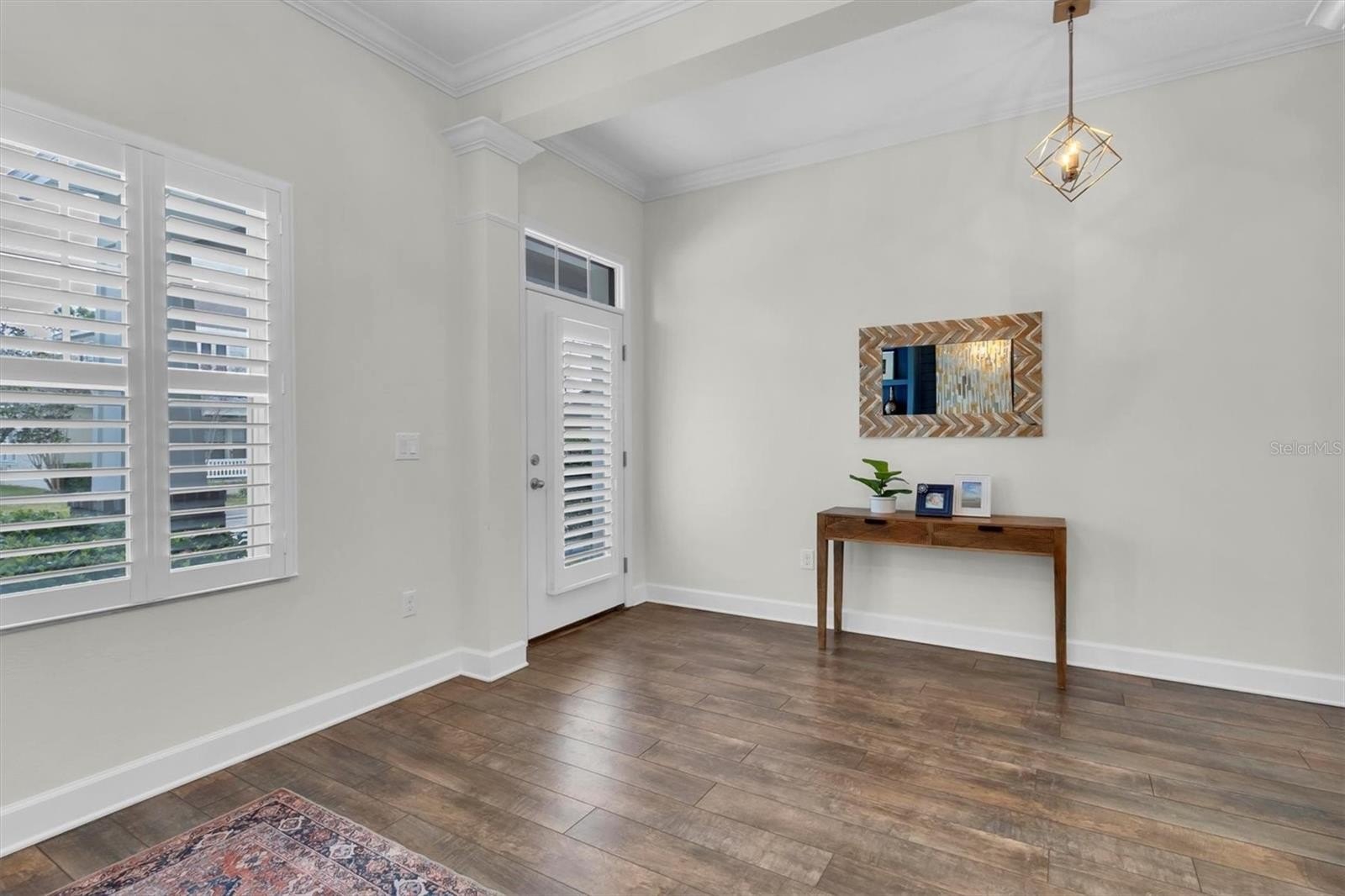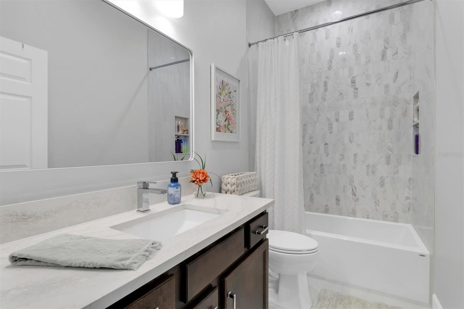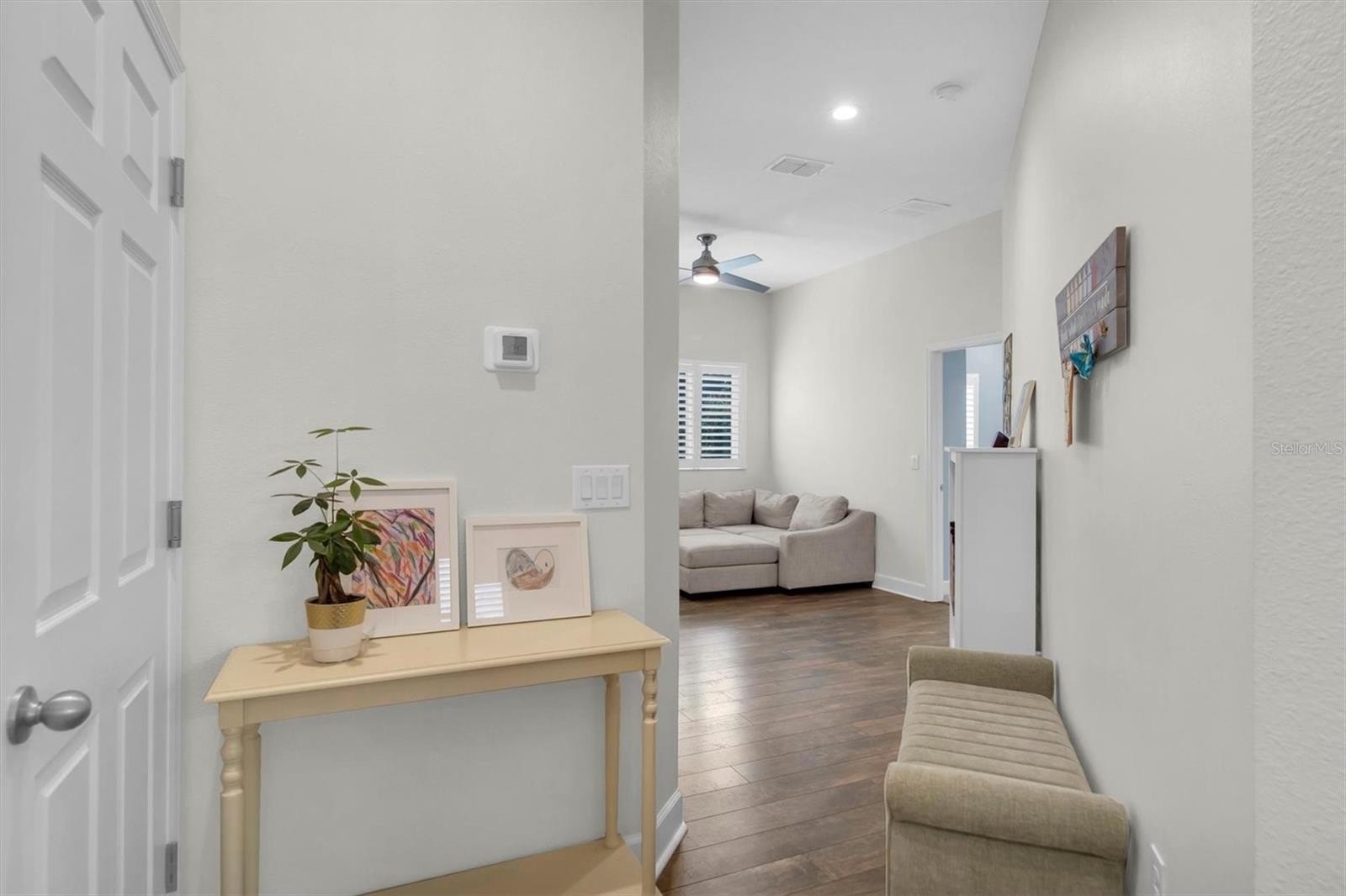 This highly sought-after David Weekley Woodlawn floor plan is a 3-bedroom, 2.5-bath home located in the desirable community of Longleaf and is loaded with upgrades throughout. The centrally located chef’s kitchen features stainless steel appliances, an electric stovetop pre-plumbed for easy gas conversion, an oversized island with breakfast bar, updated hardware, and was upgraded with stunning Cambria quartz countertops installed in 2024 in a rare, upgraded thickness along with new tile backsplash. The primary en-suite bathroom was fully remodeled and redesigned in 2024 with a fully enclosed glass shower, freestanding soaking tub, double-sink vanity and new flooring. The secondary bath was fully remodeled in 2025. Brand new air conditioning was installed in 2025. The interior has been recently repainted and recessed lighting added throughout. This home also includes a water softener. Crown molding accents the foyer, front room, main living room and primary bedroom, while plantation shutters on all windows add timeless elegance; the home is also pre-wired for surround sound. Custom living room and front office built-ins were installed in 2020, and the oversized interior laundry room and adjacent mini mudroom with custom shelving greets you from the garage entry. Enjoy an inviting front porch with plenty of room for everyone—perfect for relaxing and gathering—along with a fully fenced backyard featuring white PVC fencing for privacy and a clean, polished look. The two additional bedrooms share a versatile flex space ideal for use as a playroom, an additional living area, or hobby room. Longleaf offers a true small-town atmosphere with inviting front porches and a golf cart-friendly lifestyle, complete with an elementary school, village greens, three playgrounds, a dog park, heated community pool and spa, charming downtown shops and restaurants, tree-lined streets with wide sidewalks, a clay baseball field, soccer field, two miles of paved hiking and biking trails, natural greenbelts, fishing lakes, planned community events, beach volleyball, tennis and basketball courts, a Town Hall recreation building, multiple parks, and expansive green spaces, with a new phase adding additional parks and a second pool. Walking distance to the elementary school, shops, and restaurants, and conveniently located in the heart of Trinity near dining, shopping, hospitals, schools, and entertainment, this home is approximately 15 minutes to the beaches and 30 minutes to Tampa International Airport. No flood insurance required, and the home remained high and dry during recent hurricanes.