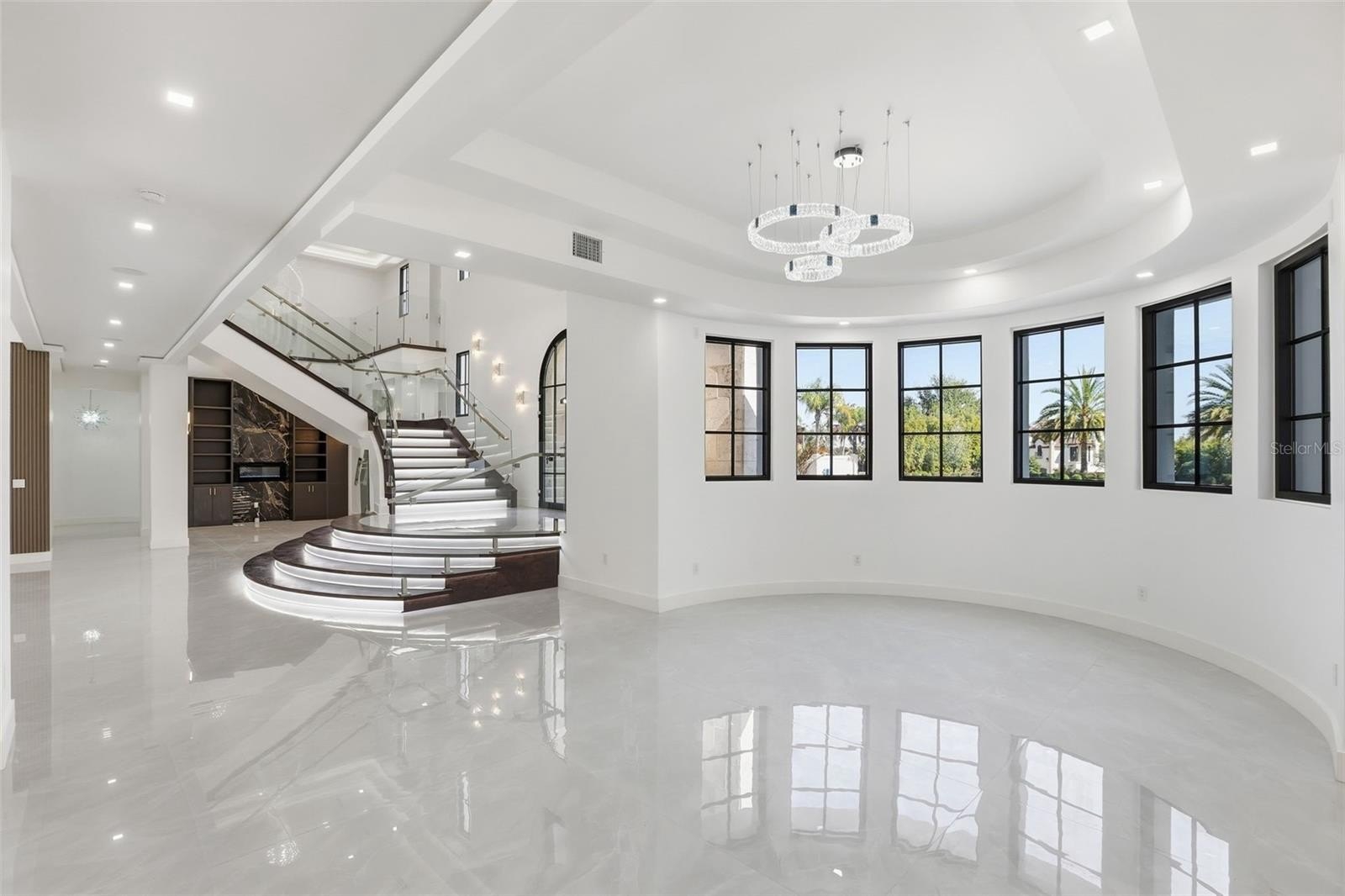 One or more photo(s) has been virtually staged. Just completed | Never lived in | A rare opportunity to be the very first to call this architectural showpiece home! Positioned in the highly sought after Lake Down Reserve community of Windermere, this custom-built modern Mediterranean estate delivers nearly 8,000 square feet of elevated design, cutting-edge construction, and curated luxury. Built by Supreme International Construction – one of Windermere’s most respected luxury builders – this home is a true statement of craftsmanship and innovation. From the hollow-core concrete second floor to level five interior walls, hurricane-impact windows and doors, and comprehensive low-voltage wiring, every structural detail reflects next-level quality. Inside, the open-concept floor plan unfolds with dramatic scale and natural light, anchored by a show-stopping LED-lit staircase and seamless indoor-outdoor flow. The chef’s kitchen is outfitted with premium Wolf appliances, custom cabinetry, and refined finishes that balance timeless elegance with modern edge. Designed for both grand entertaining and private retreat, the home features: 5 spacious bedrooms | Dedicated executive office | 6 full baths and 2 half baths (each bath appointed with luxury bidets) | Custom California Closets throughout | Elevator access for effortless convenience | Oversized 4-car garage. A rare “bonus basement” level adds additional flex space – perfect for a media lounge, in-law suite, wine cellar, game room, or collector’s showcase. Outside, enjoy balcony views of Lake Down and a resort-caliber backyard that includes a custom pool and spa, a dramatic sunken outdoor kitchen, fire-pit and expansive entertaining terraces designed for unforgettable evenings under the Florida sky. Lake Down Reserve offers expansive homesites, 24-hour virtual guard security, zoning for top-rated schools, and proximity to fine dining, championship golf, world-class shopping, and Orlando’s renowned attractions – all while still preserving the privacy and tranquility that define Windermere living. This is more than new construction. It is a fully realized modern estate – bold, refined, and built for the most discerning buyer. Welcome to your legacy home!