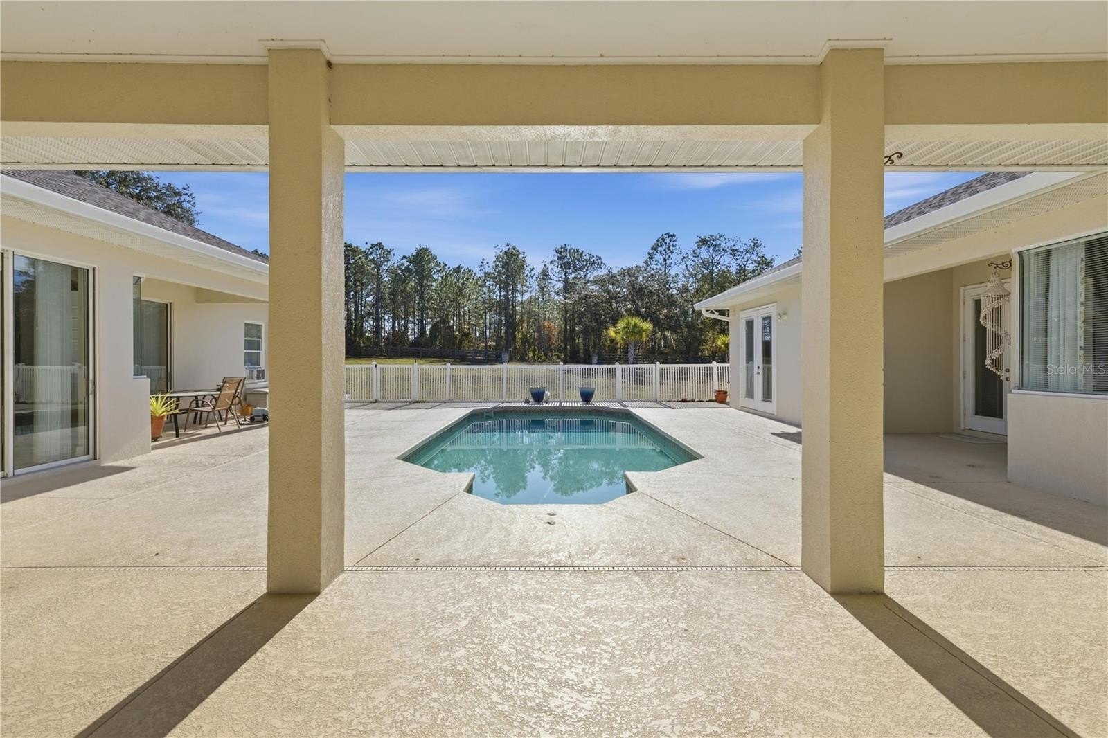 Enjoy Florida outdoor living with a screened pool and large courtyard, great for relaxing or entertaining. The acreage offers space for pasture, livestock, gardening, or expansion (buyer to verify use).