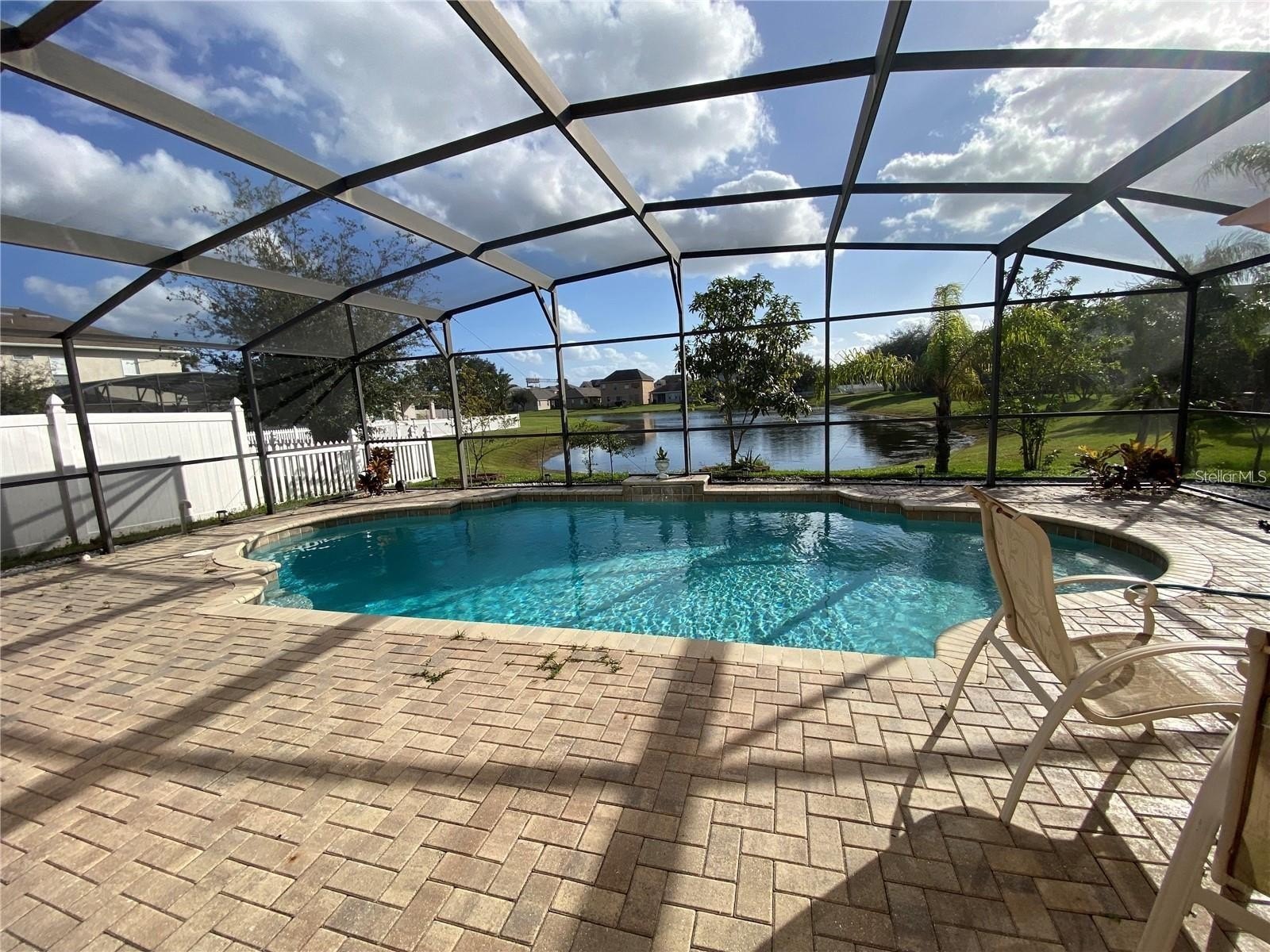 The generously sized primary suite offers a relaxing retreat with garden tub and separate shower. Step outside to enjoy your private screened POOL overlooking a tranquil pond—perfect for entertaining or relaxing Florida evenings. The community also features a community pool and playground for residents to enjoy.