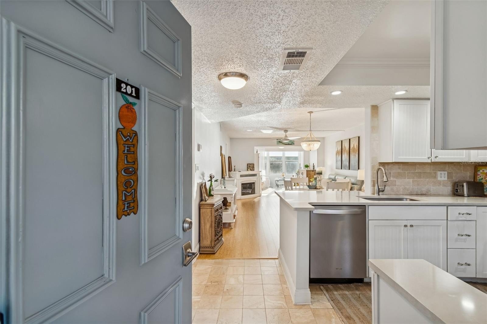 Beautifully remodeled 2nd floor end unit in the highly sought after Heather Lake 55+ age restricted community. This beautiful condo boasts a NEW ROOF (2024), NEW A/C (2025), and is accessible by stairs or an elevator for your convenience. The unit features a kitchen with quartz counters, stainless appliances, and a breakfast bar. The unit also features a large living room that flows into the lanai with a water view of the pond and palm trees, a dining area, 2 large bedrooms with lots of closet space, and 2 full bathrooms. There are also a Bosch washer and dryer in the unit and a utility room for additional storage. Recent upgrades include newer kitchen, bathrooms, bamboo hardwood flooring throughout, newer hot water heater, interior paint. Heather Lake offers a clubhouse with a heated pool, picnic tables and grilling area, bike racks, walking paths, and shuffleboard courts. Located in the town of Dunedin, a community that embraces culture and history, you are only minutes away from everything this vibrant town has to offer: shopping, the epic Pinellas Trail, tennis courts, sports complexes including the Spring Training home of the Toronto Blue Jays, waterfront parks, entertaining nightlife, an energetic art scene and a variety of top-notch dining options. Just minutes away from seascapes and sunsets at any one of our coastline’s numerous beaches.