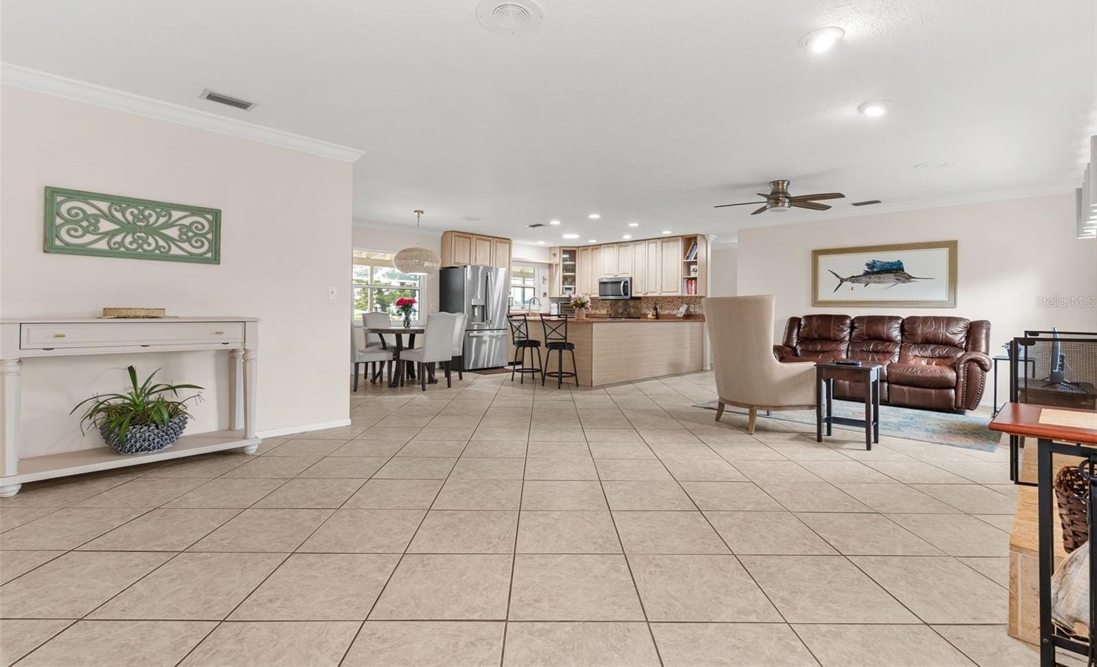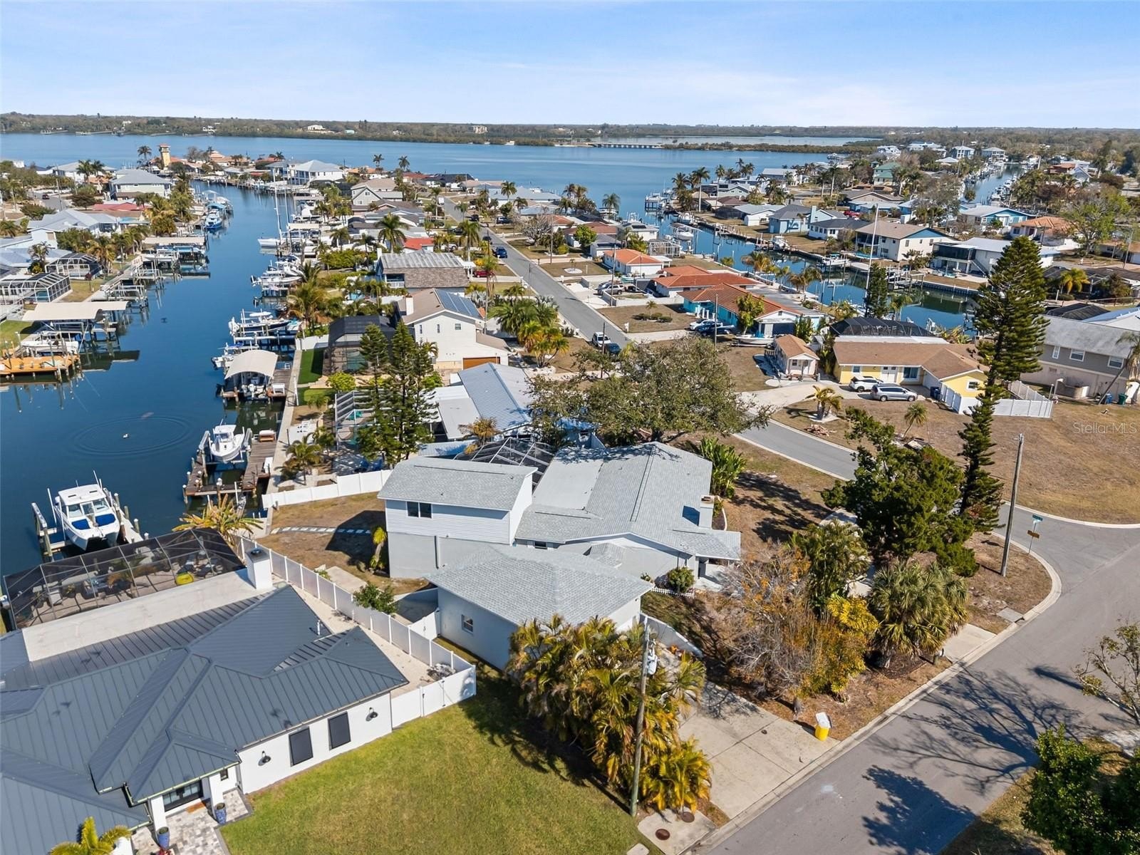 Positioned on an expansive corner parcel with commanding water views, this exceptional waterfront estate embodies refined coastal living at its finest. Elevated and masterfully constructed with concrete block, the residence offers both architectural presence and enduring peace of mind. Thoughtfully designed for seamless indoor-outdoor living, the open-concept floor plan unfolds with effortless sophistication. Four beautifully appointed bedrooms and three-and-a-half baths include two private ensuite retreats, offering comfort and privacy for residents and guests alike. The second-floor primary suite serves as a serene sanctuary, featuring dual walk-in wardrobes, a spa-inspired bath with jetted soaking tub and walk-in shower, and sweeping vistas of the bay and canal that capture the essence of waterfront luxury. Designed for both grand entertaining and tranquil relaxation, the outdoor living spaces are truly exceptional. A heated pool is complemented by an expansive screened lanai — the perfect backdrop for alfresco gatherings and unforgettable sunset evenings. Other distinguished amenities include a wood burning coral-front fireplace, abundant custom storage throughout, an oversized tandem RV/Boat garage with integrated workshop, dual driveways for added convenience and guest access, a private composite dock with a 10,000-lb lift, and unrestricted deep water access with no bridges to the bay or Gulf. Notable recent improvements include a new roof (2025) and water heater (2024), enhancing both value and longevity. Whether envisioned as a full-time coastal residence or a high-performing luxury rental investment, this property offers an extraordinary opportunity to experience the best of waterfront living. Bay Colony offers residents easy access to I-275, I-75, US-41, and US-301, so commuting either north to St. Pete and Tampa or South to Bradenton and Sarasota is very manageable. Hurry and put this one on your list today, as opportunities like this don't come along everyday!