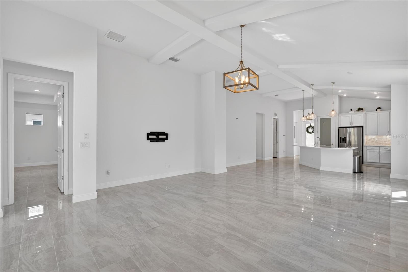 One or more photo(s) has been virtually staged. Preferred Lender is offering 1% of the loan amount as a lender credit towards buyers closing costs or interest rate buy-down on this specific homes! Welcome to the resort-style community of Cross Creek, where everyday living feels like a getaway. This beautifully designed 3 bedroom home also features HURRICANE IMPACT RESISTANT windows and sliding glass doors, a versatile flex room that can easily serve as a home office, playroom, creative studio, or be converted into a 4th bedroom to suit your lifestyle. Upon arrival, you’re welcomed by pristine landscaping, charming architectural details, and a crisp exterior that sets the tone for what’s inside. Step through the front door and immediately feel the openness created by soaring 13 foot vaulted ceilings, exposed beams, abundant natural light, and sleek upgraded tile flooring throughout with no carpet. The kitchen is the heart of the home with modern design, stainless steel appliances, a natural gas range, elegant countertops, a walk in pantry, and generous cabinetry that makes organization effortless. The dining and living areas flow seamlessly together, creating an inviting atmosphere ideal for gatherings. Large sliders extend the living space outdoors and make the home feel even more expansive. The primary suite is a private retreat featuring a walk-in closet with a custom closet system, and a spa inspired ensuite bathroom with dual sinks, designer finishes, and a spacious walk in shower. Guest bedrooms and the additional flex room offer plenty of room for family, visitors, or work from home needs. Out back, your personal oasis awaits. The fully screened and heated pool provides year round enjoyment with plenty of deck space for lounging, dining, or relaxing with friends and family. This space is also pre plumbed for a full functioning outdoor kitchen, giving you the perfect foundation to create the outdoor entertaining setup of your dreams. With private landscaping and no rear neighbors, this retreat feels incredibly private. Community amenities take this home to the next level. Cross Creek offers a true resort experience that includes a zero entry pool with a waterslide and splash pad, playgrounds, pickleball and basketball courts, a dog park, shaded pavilion with BBQ area, walking trails, and scenic lakes. Cable, internet, and irrigation are also included for added convenience. Take advantage of being in walking distance to a highly rated elementary school and zoned for the recently built Parrish Community High School. Area highlights include quick access to the Fort Hamer Bridge, Lakewood Ranch, shopping, dining, the Fort Hamer boat launch, two new county parks, and world famous beaches like Anna Maria Island, Siesta Key, and St. Pete Beach. With easy routes to US 301, I 75, SRQ, TPA, and PIE airports, you are perfectly positioned for work, travel, and play. This home checks every box with comfort, style, location, amenities, and an outdoor retreat that makes every day feel special. Schedule your private showing today and experience the beauty of Cross Creek living.