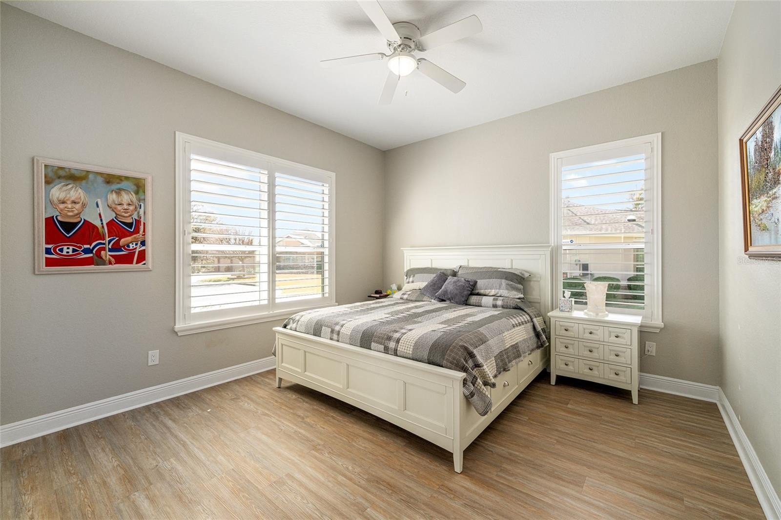 • Front guest room with plantation shutters (featured across the front of the home)