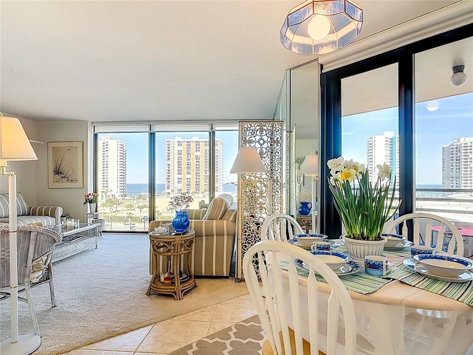 OCEAN VIEWS! Facing due East, EVERY room inside this condo enjoys an amazing OCEAN VIEW! Whether you are looking for a beach retreat or a full-time coastal lifestyle, this property is perfectly situated for Florida's ideal climate in a growing area. Originally the builder's model, #6A4 showcases the best views and layout. Premium extras include shiplap and reflecting mirrors. The living space is bathed in natural sunlight and features unobstructed floor-to-ceiling windows.What makes this condo extra special is "eye level viewing" of tennis matches and a view of the high rise buildings which form a spectacular lighted night skyline. Watch rocket launches. This is the ONLY split bedroom plan offering each bedroom its own private en-suite, walk in closet, and balcony - making this choice ideal for overnight guests, a roommate, caregiver, or a home office.Located in a small town with population about 5,500, this resort oriented area fulfills every athletic and cultural activity: Golf, tennis, swimming, pickle ball, table tennis, shuffle board. Museums & theater nearby. Steps away to the ocean front, grocery store, & restaurants.Airport convenience: Drive times: Daytona Beach Airport 20 minutes, Sanford International 60 minutes, Orlando International 90 minutes. College performances open to the public. Condo Association has no age restriction! Pet policy- small pets welcome - pet policy, 3 month minimum rental. OPTIONAL $4,500 for TURNKEY - FURNISHED.